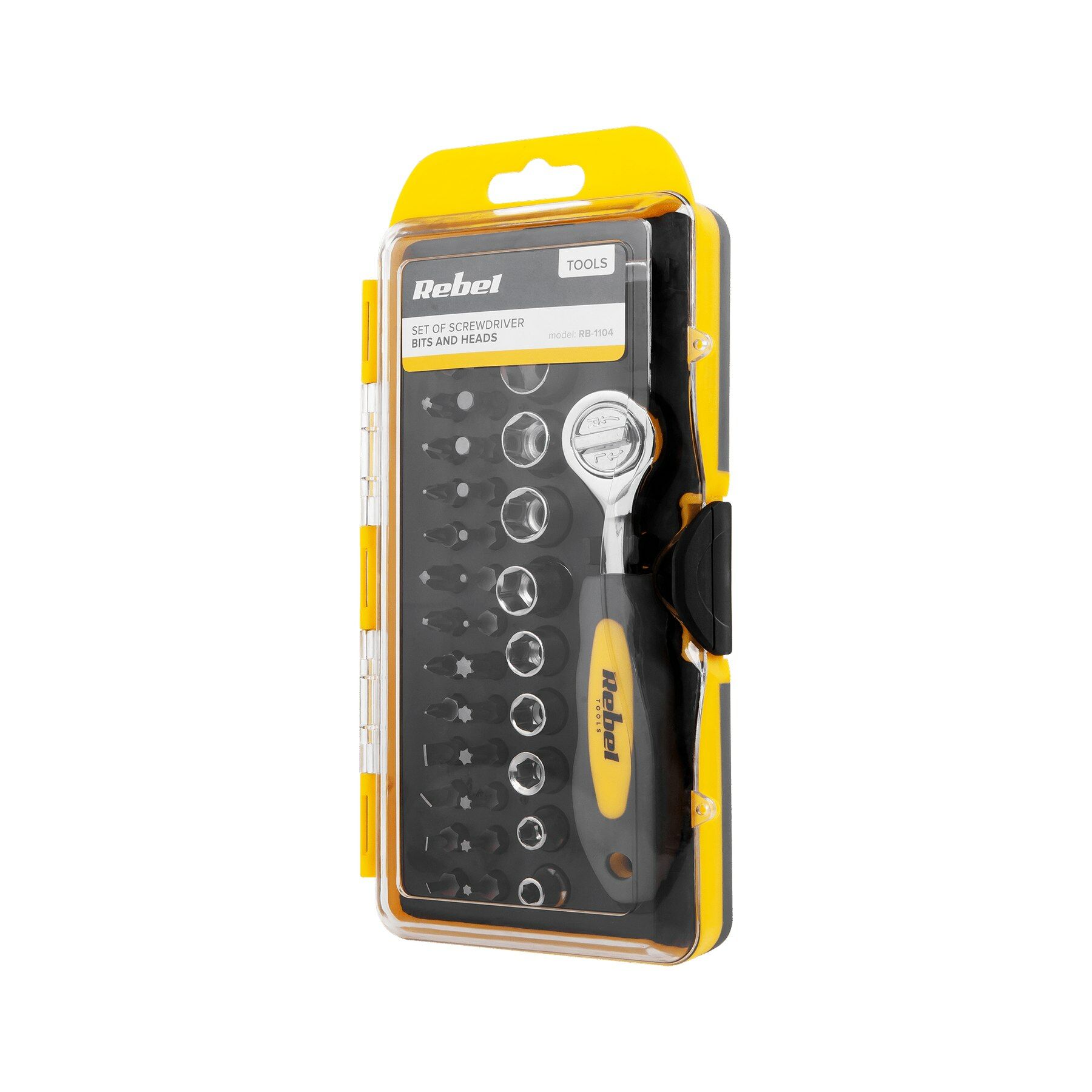 De RB-1104 van Rebel is een 38-delige doppen- en bitset van Rebel. Elk van de meegeleverde accessoires, d.w.z. ratelsleutel, magnetische adapter, verlengstuk, 9 doppen en verschillende soorten bits, zal het elke doe-het-zelf gemakkelijker maken. De ergonomische handgreep van de moersleutel zorgt voor extra comfort tijdens het werk en dankzij het chroom-vanadiumstaal, dat bestand is tegen corrosie en roest, zal de RB-1104 jarenlang meegaan. Ook mooi om cadeau te geven!