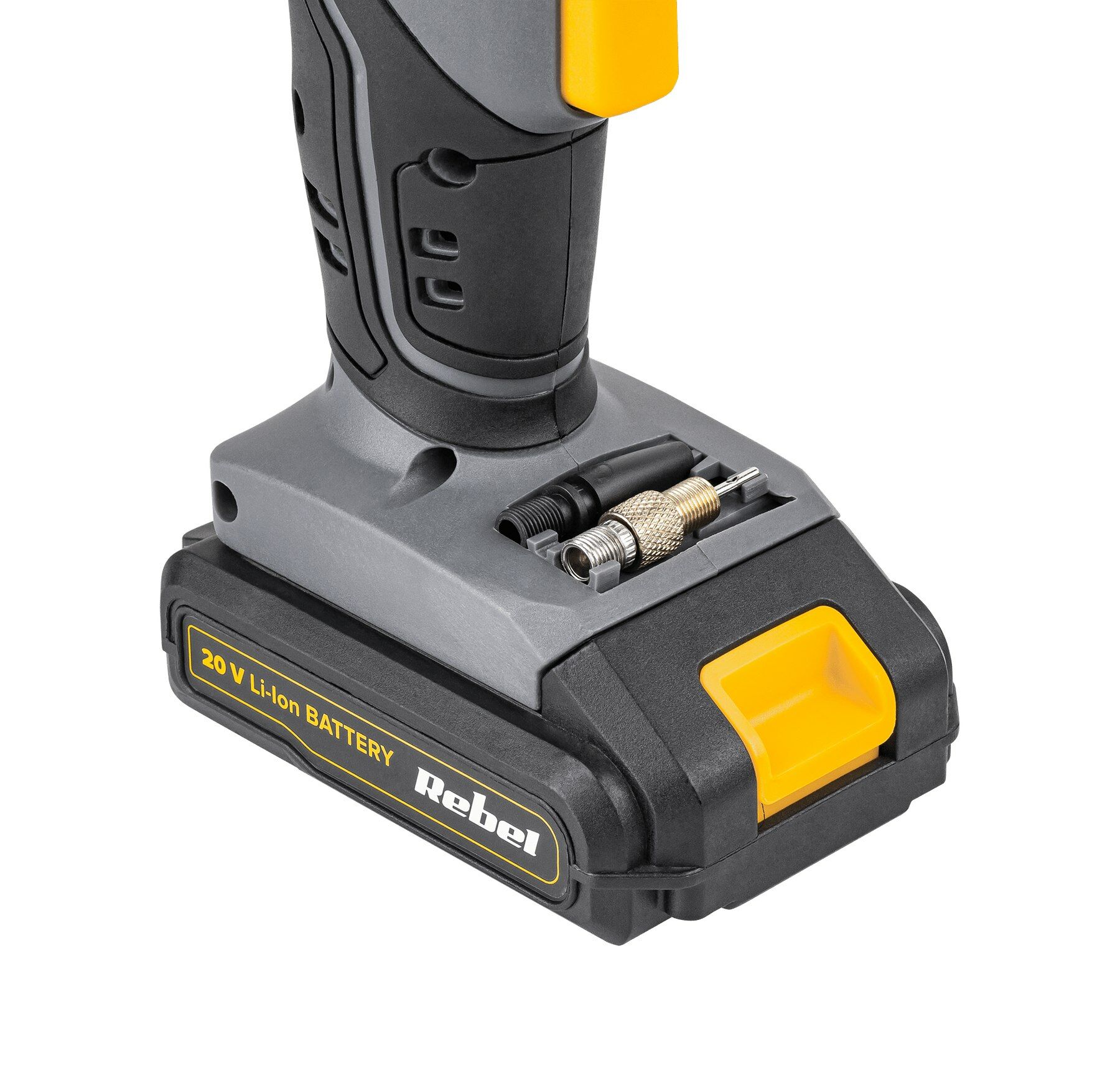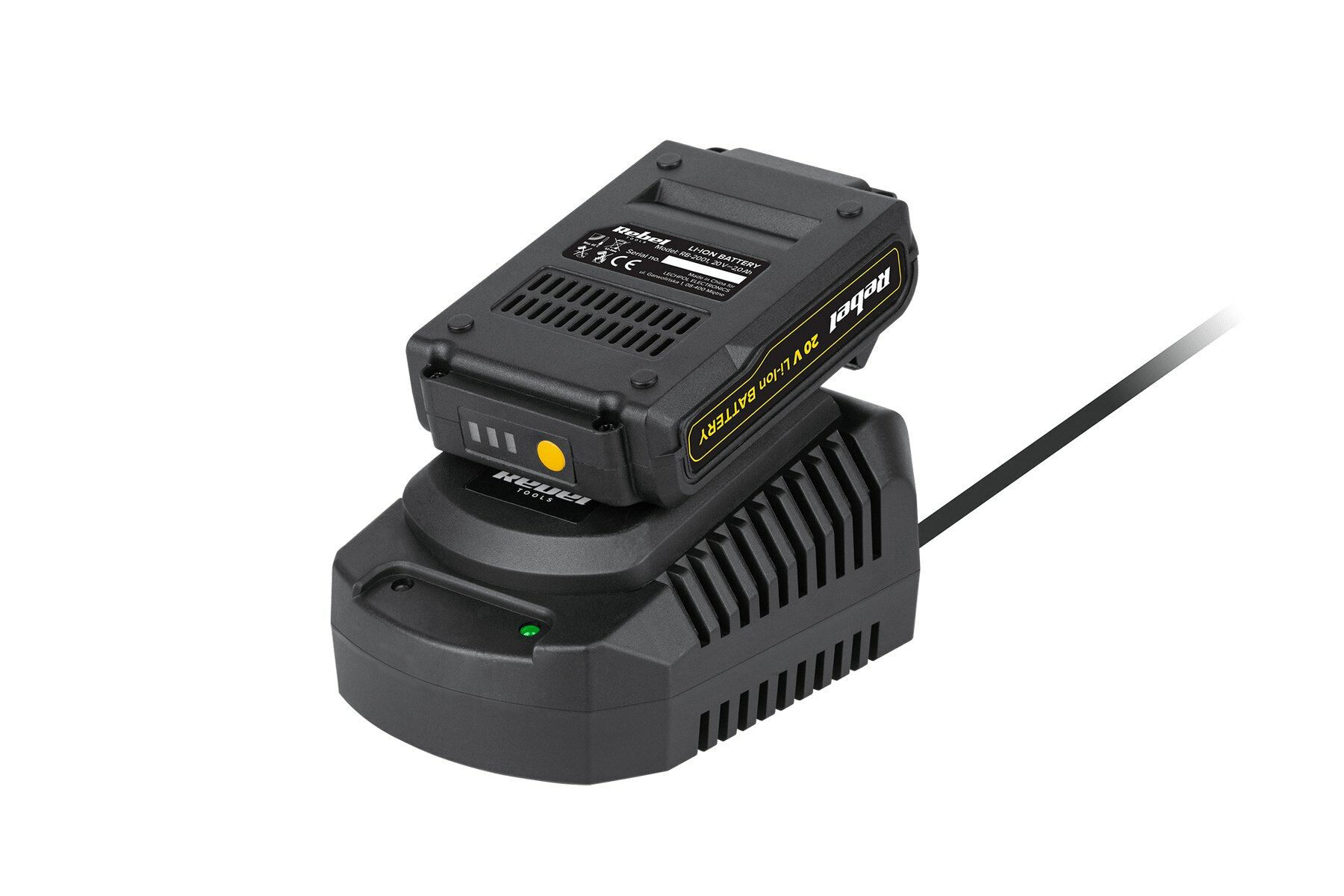 De Rebel RB-1060 werkt op een accu, en afhankelijk van uw behoeften kunt u een van de twee modellen aanschaffen: 2 Ah (RB-2001) of 4 Ah (RB-2002). Het voordeel van deze accu's is dat ze universeel zijn en passen op de meeste apparaten uit de Rebel Tools-serie.