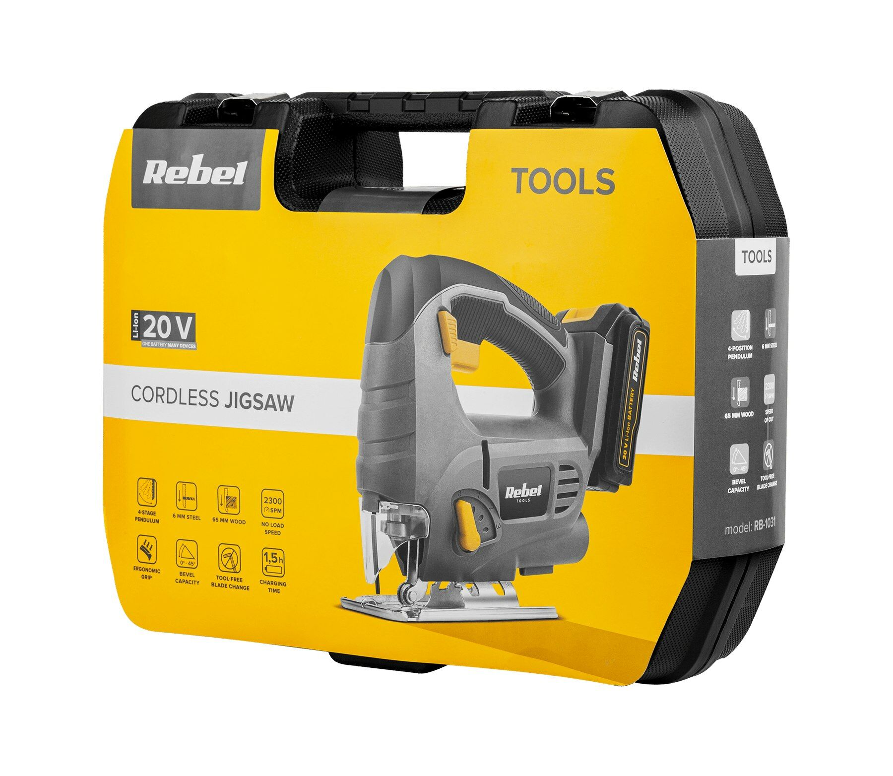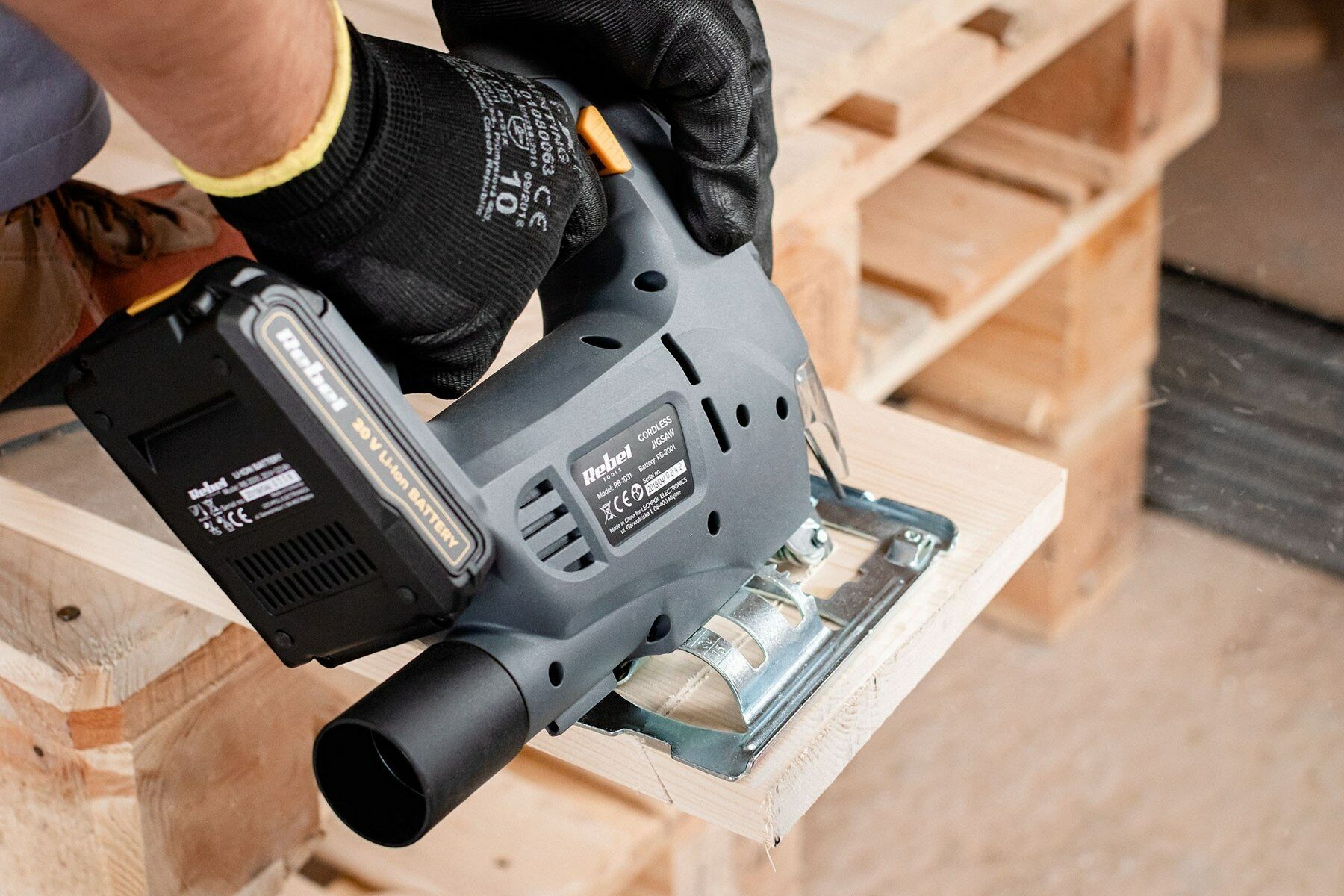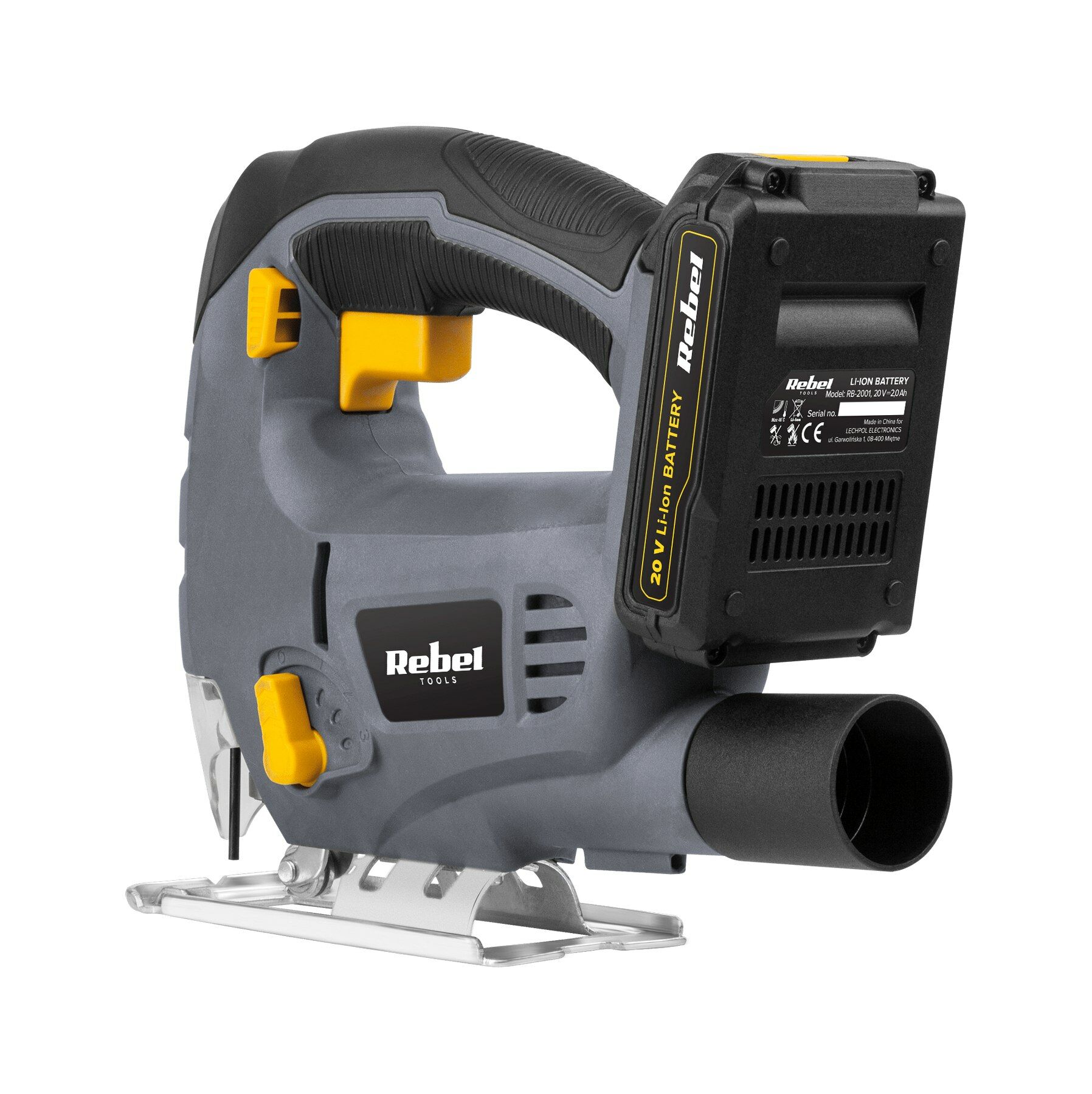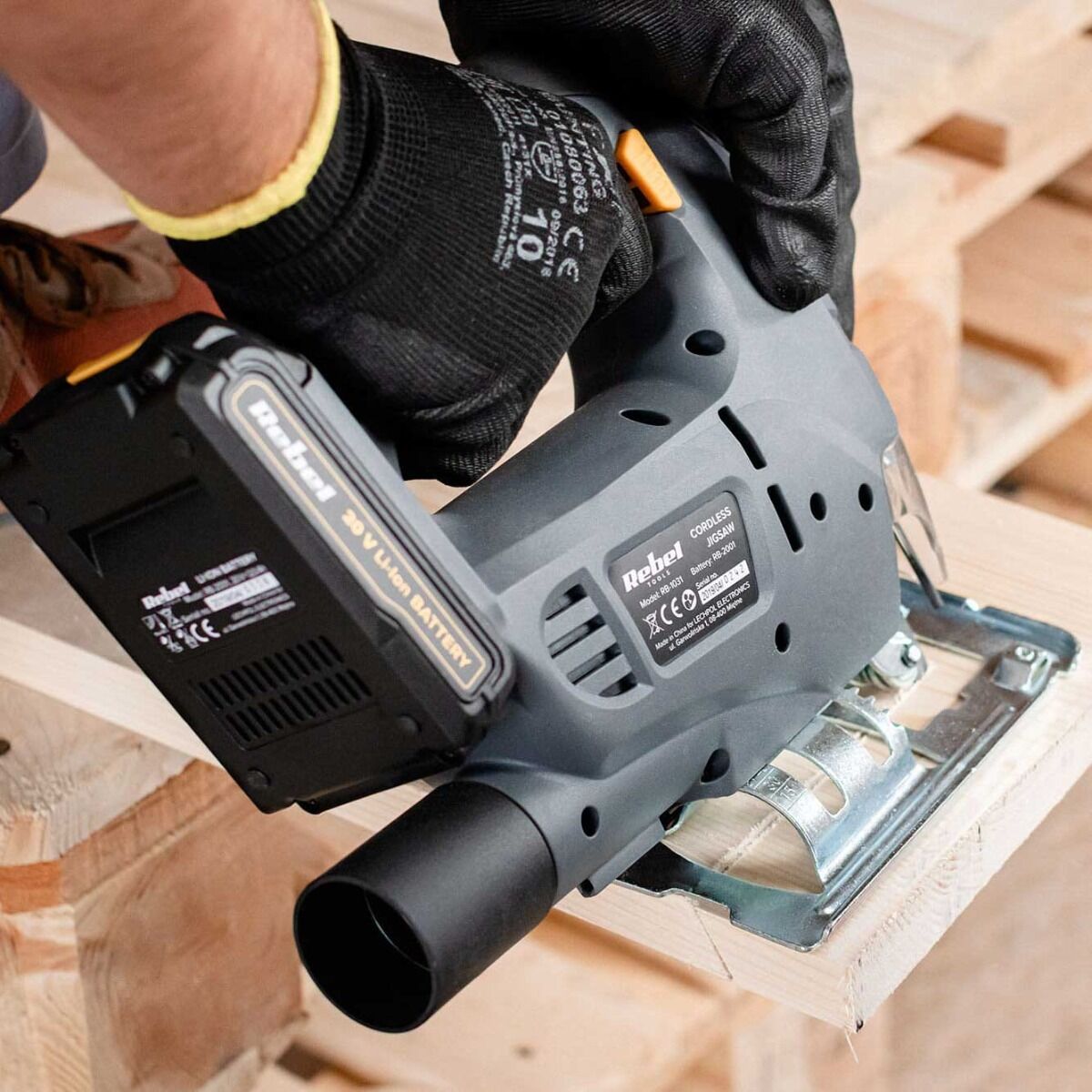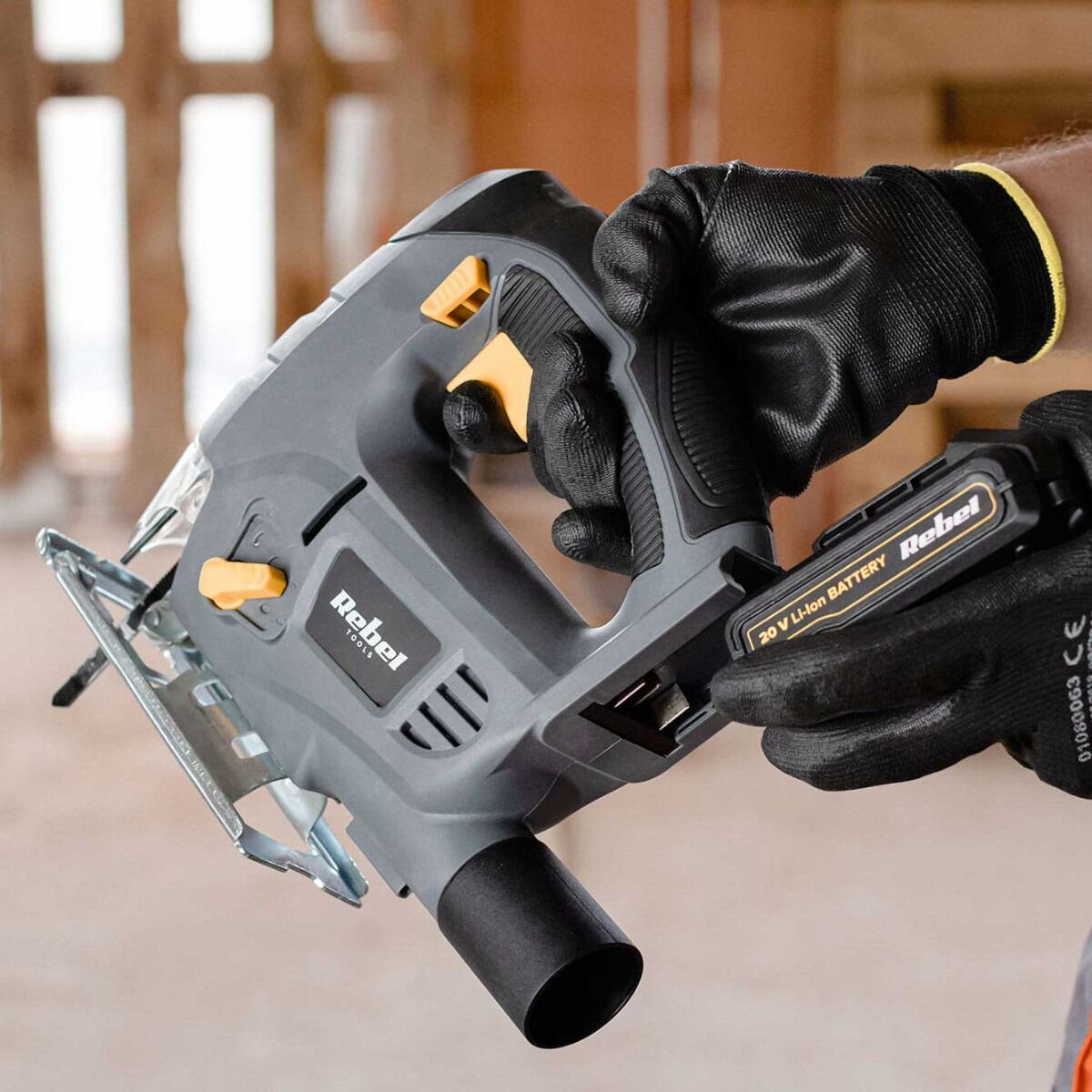 De veelzijdige RB-1031 accu-decoupeerzaag van Rebel Tools biedt eenvoudige en veilige zaagbladvervanging, met keuze uit drie zaagbladen en vier zwenkposities, inclusief een tweezijdige zaaghoekverstelling tot 45 graden, ideaal voor diverse klussen. De mogelijkheid om een werkplaatsstofzuiger aan te sluiten verbetert de gebruikerservaring door stofafzuiging voor betere zichtbaarheid van het materiaal. Deze duurzame zaag met metalen basis, sterke behuizing en comfortabele rubberen handgreep garandeert langdurige en ergonomische prestaties, geschikt voor hoogwaardig werkplaatsgereedschap.