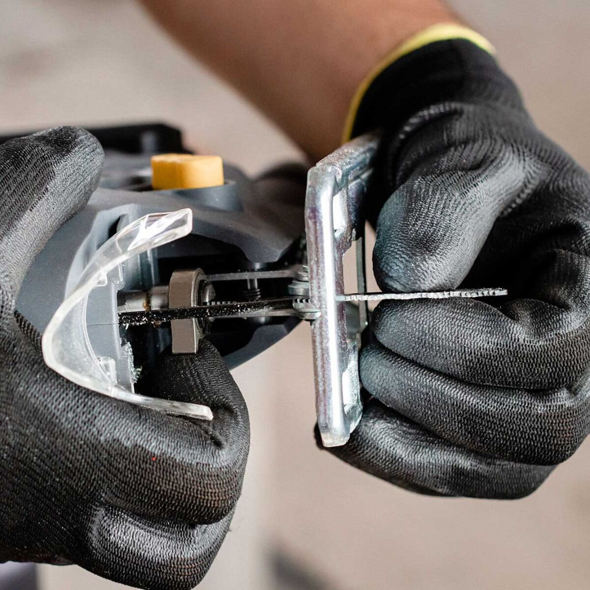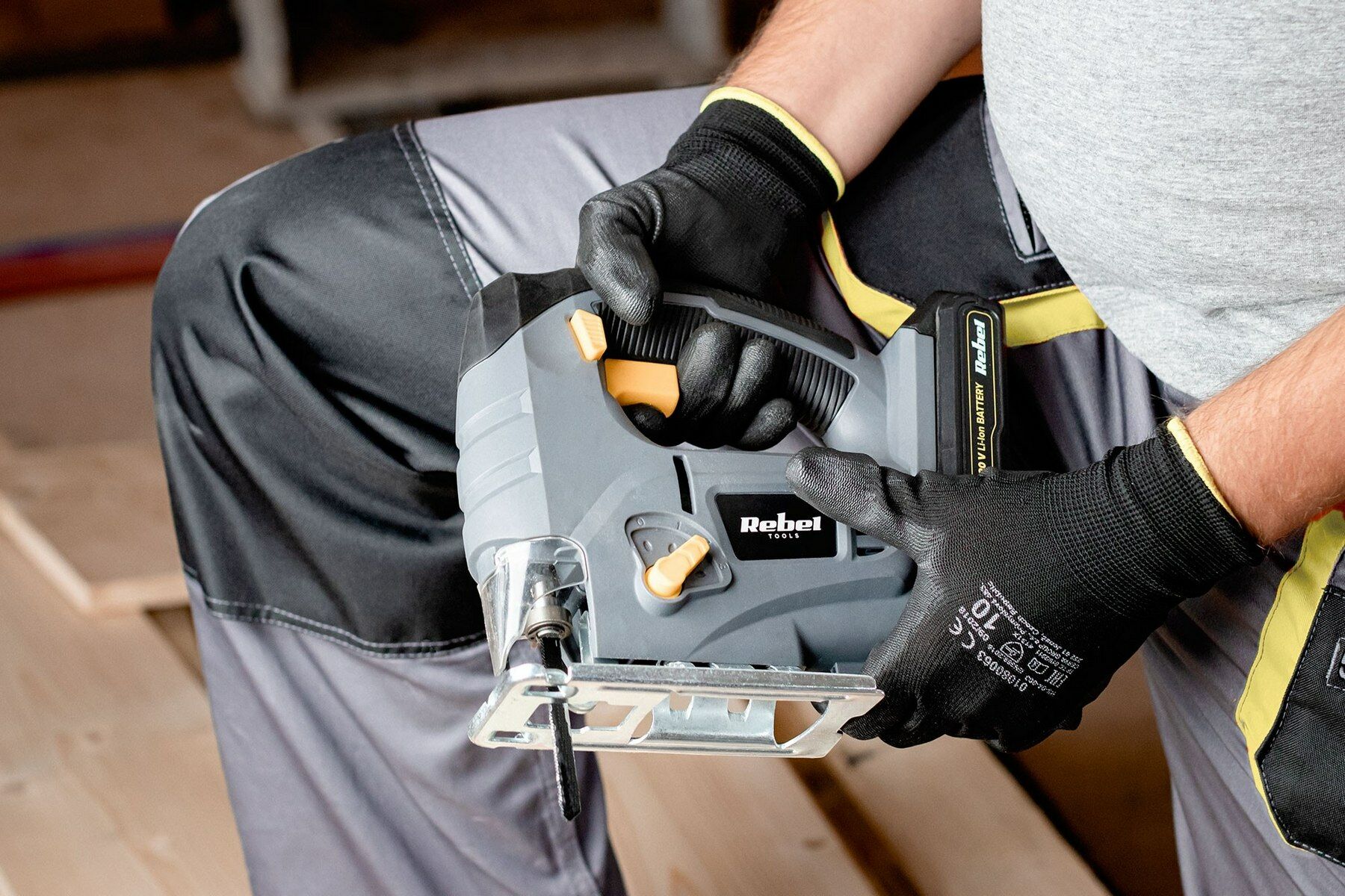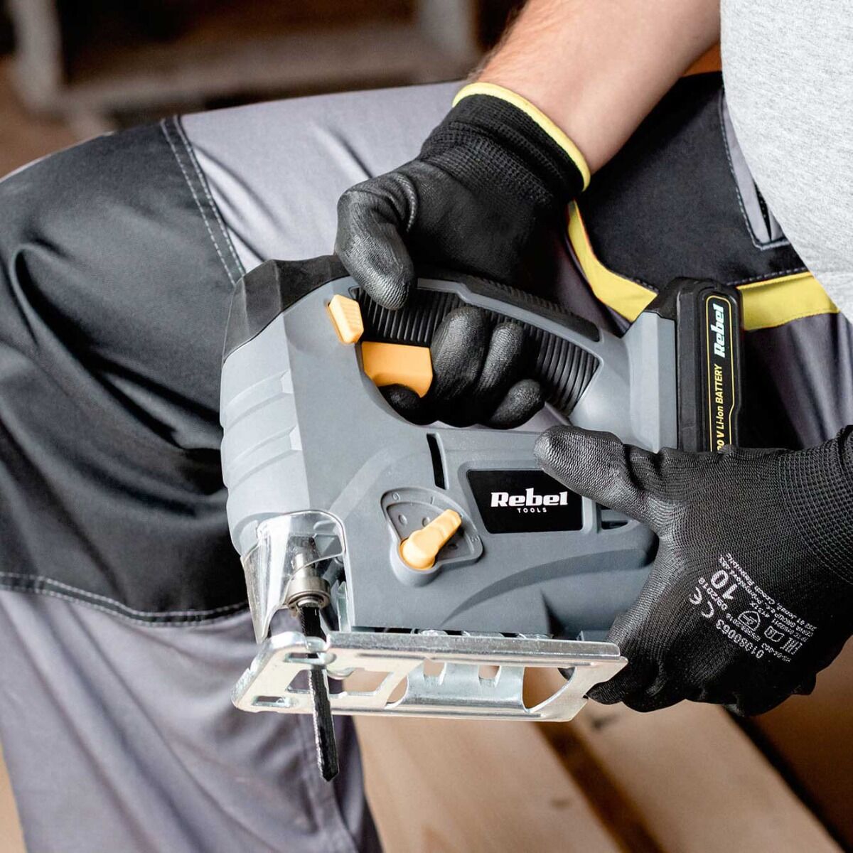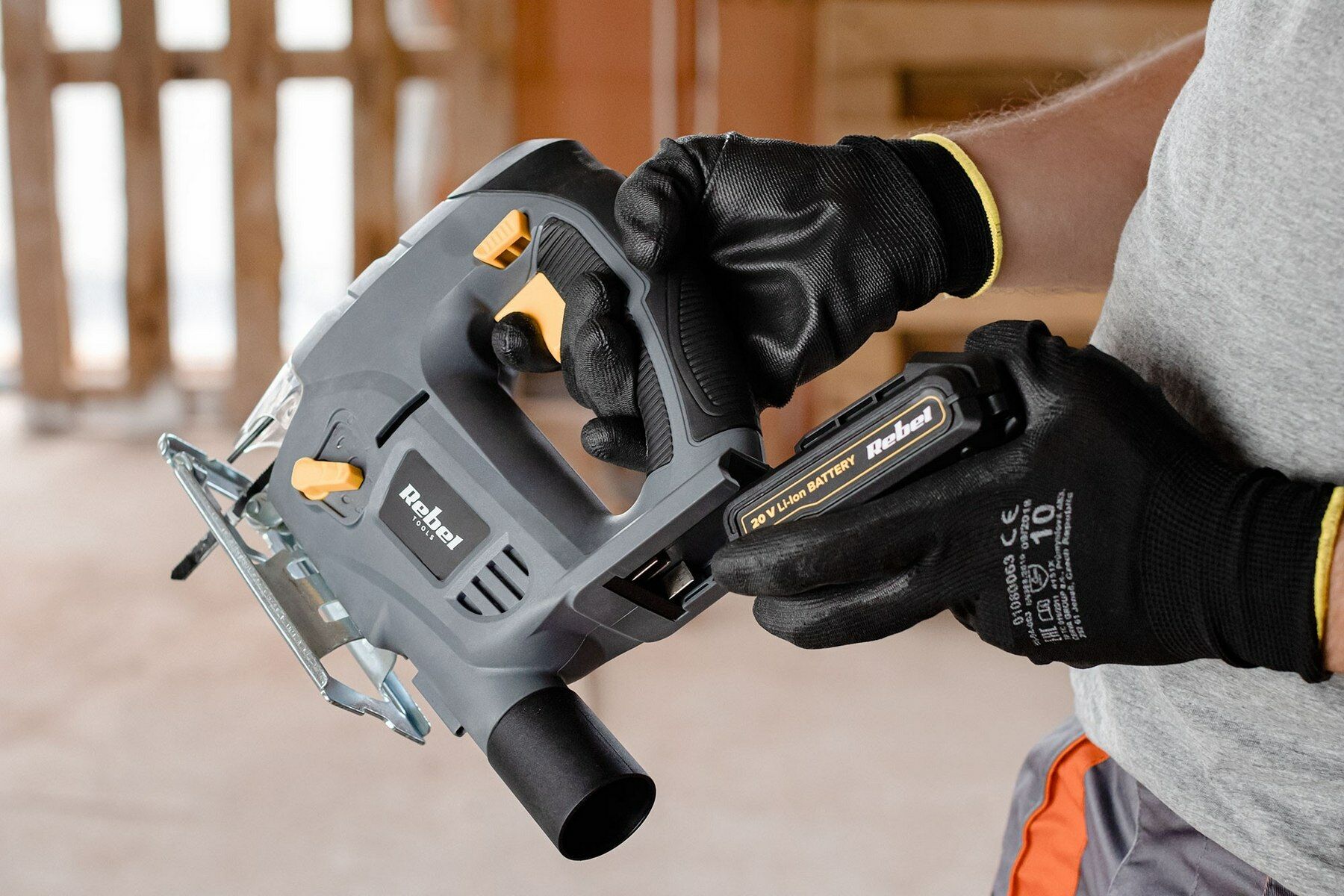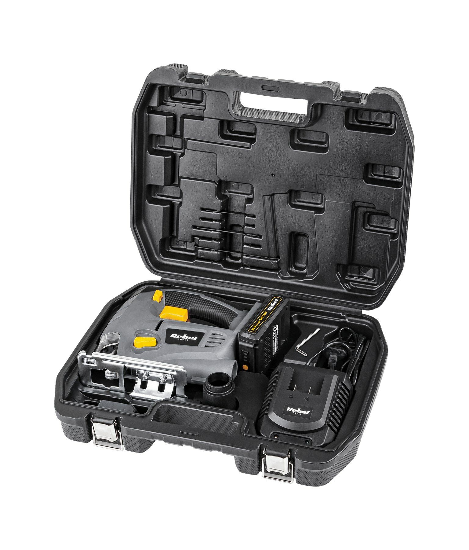 De veelzijdige RB-1031 accu-decoupeerzaag van Rebel Tools biedt eenvoudige en veilige zaagbladvervanging, met keuze uit drie zaagbladen en vier zwenkposities, inclusief een tweezijdige zaaghoekverstelling tot 45 graden, ideaal voor diverse klussen. De mogelijkheid om een werkplaatsstofzuiger aan te sluiten verbetert de gebruikerservaring door stofafzuiging voor betere zichtbaarheid van het materiaal. Deze duurzame zaag met metalen basis, sterke behuizing en comfortabele rubberen handgreep garandeert langdurige en ergonomische prestaties, geschikt voor hoogwaardig werkplaatsgereedschap.