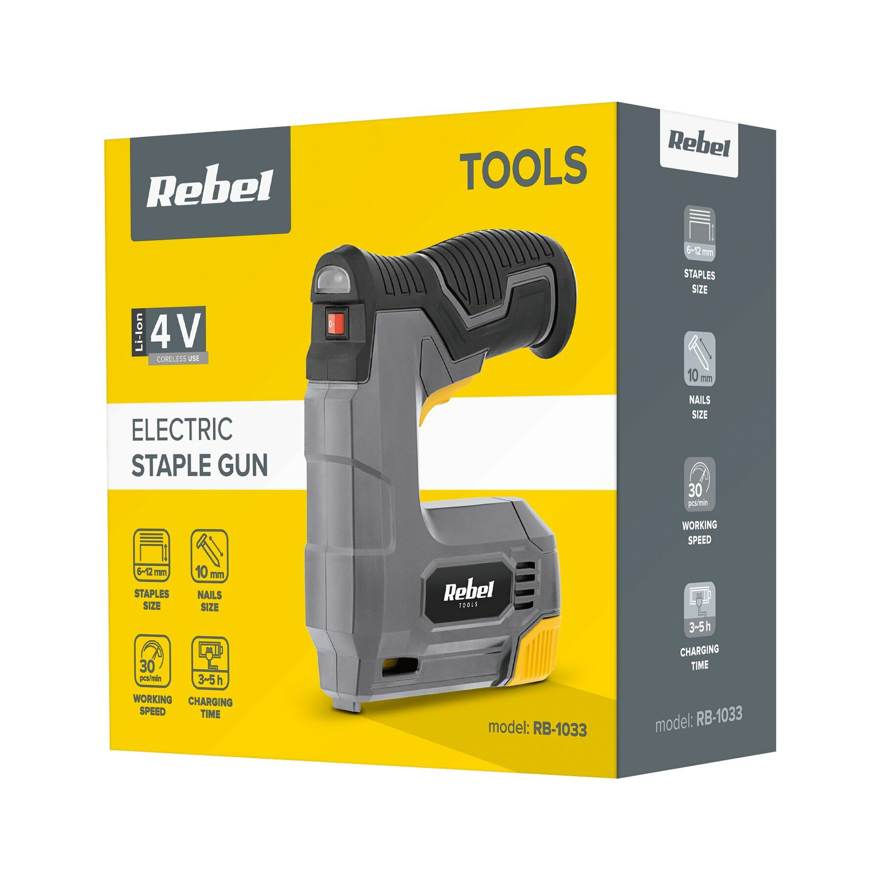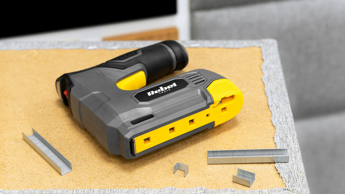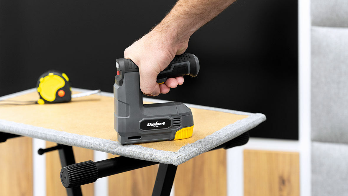 Het bekleden van meubels is tegenwoordig een populaire hobby onder veel mensen. Als u een van die doe-het-zelvers bent die oude meubels renoveert of gestoffeerde panelen of stoelen wilt maken, dan is de RB-1033 bekledingsnietmachine van Rebel ideaal voor u. Het bekleden van meubels is echter niet de enige functie van de RB-1033. Met dit apparaat heeft u de mogelijkheid om zowel nietjes als spijkers van 10 mm te gebruiken voor bijvoorbeeld het bevestigen van panelen, folie of papier.