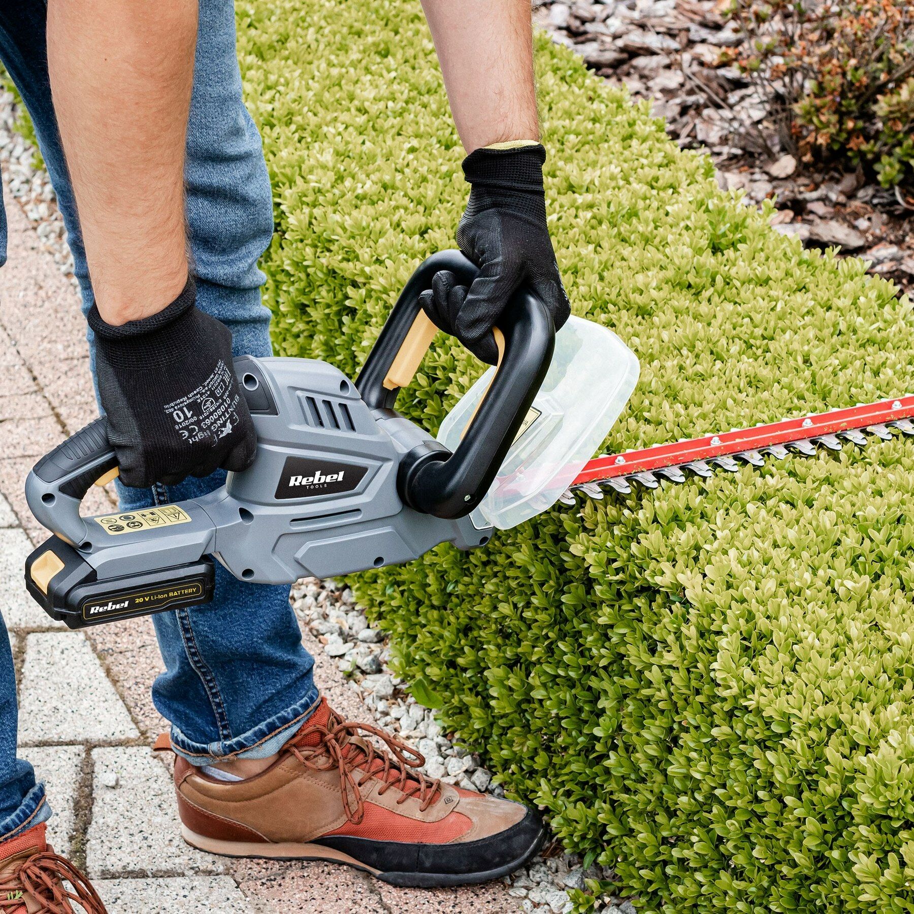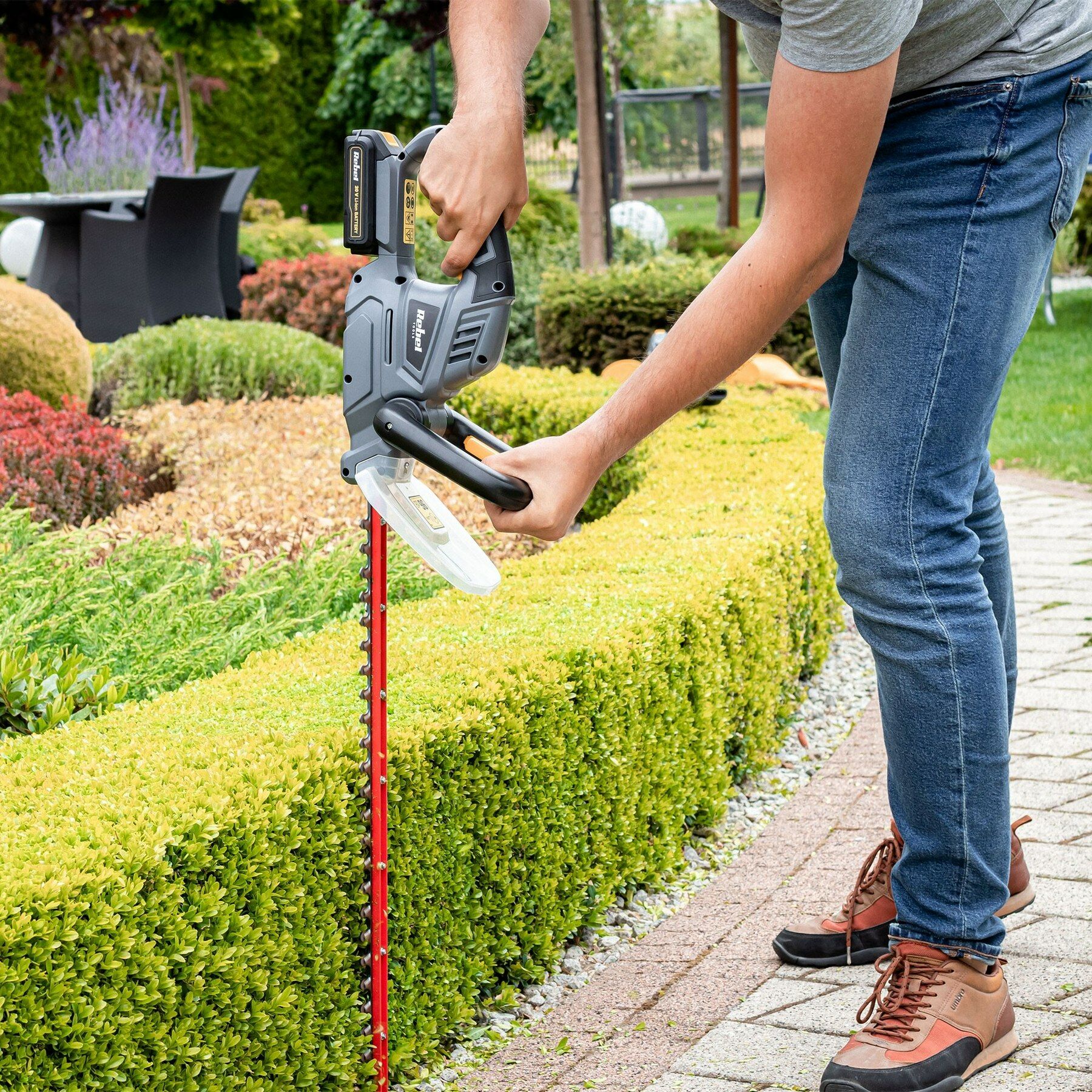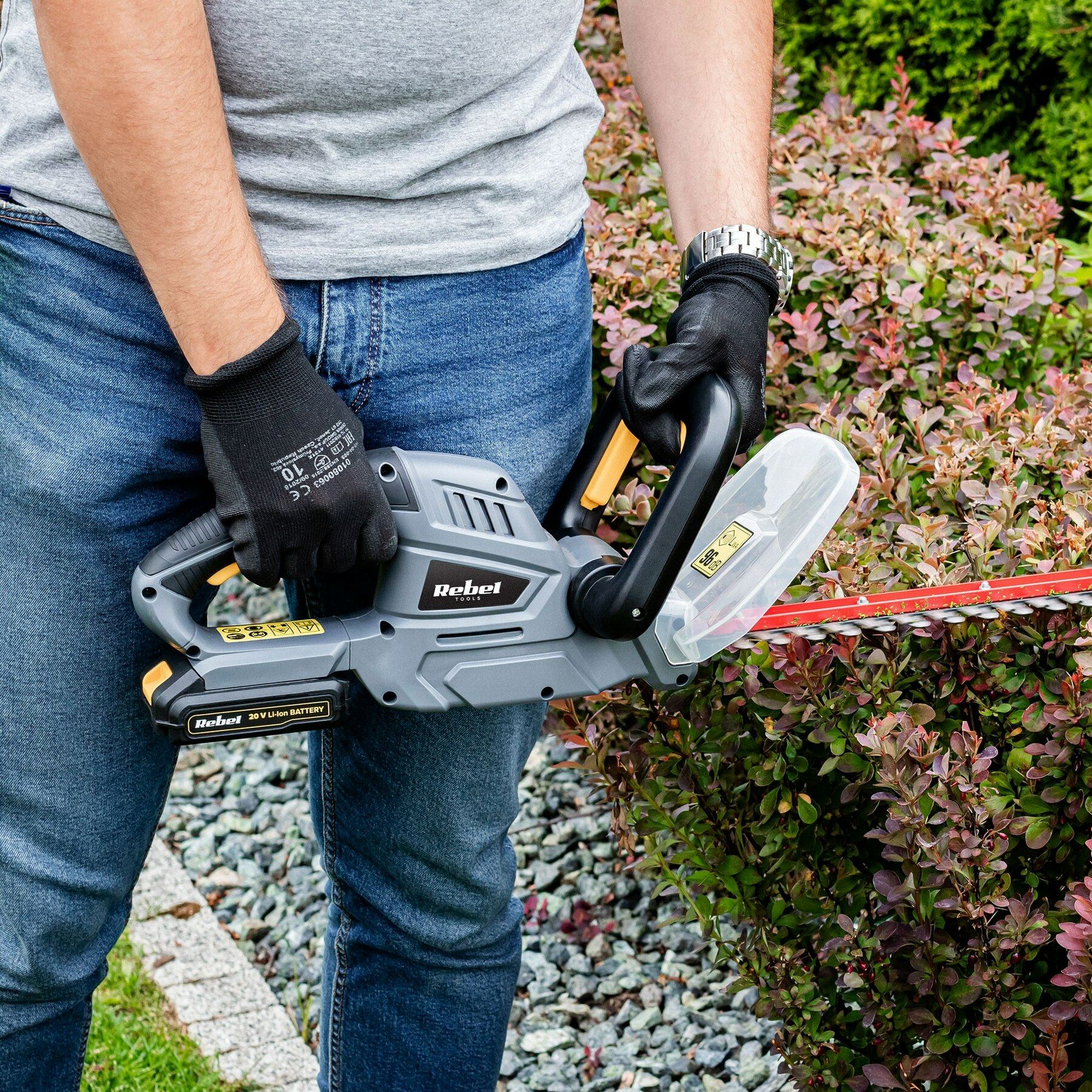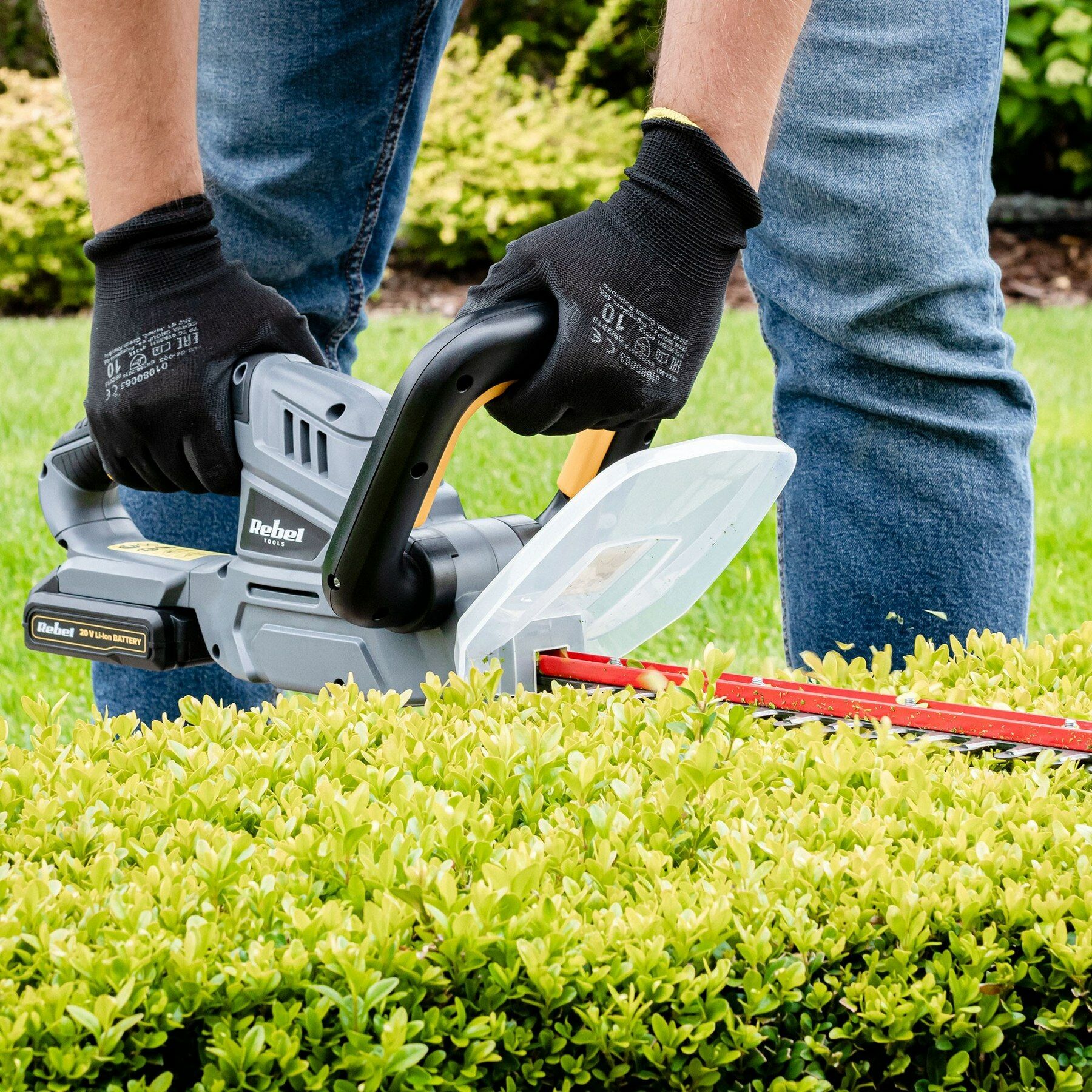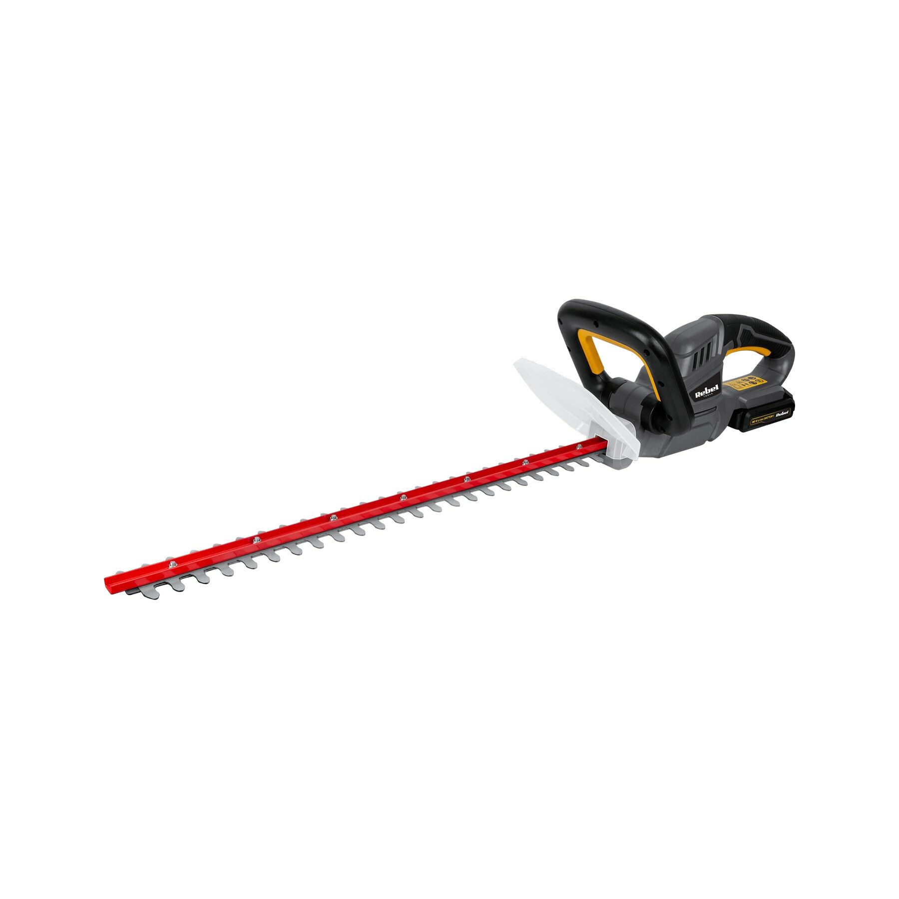 Met de RB-5001 heggenschaar van Rebel staan uw struiken en hagen er altijd mooi bij! De heggenschaar heeft een duurzaam, laser gesneden, stalen mes met een lengte van 52 cm, waardoor snel, comfortabel en nauwkeurig snoeien van zelfs brede hagen mogelijk is. Voor extra comfort en veiligheid is de RB-5001 uitgerust met een handgreep aan de voorzijde en een beschermkap. En omdat het apparaat draadloos is, Kunt u zich gemakkelijk verplaatsen tijdens het werk zonder het gevaar van het doorsnijden van uw snoer
