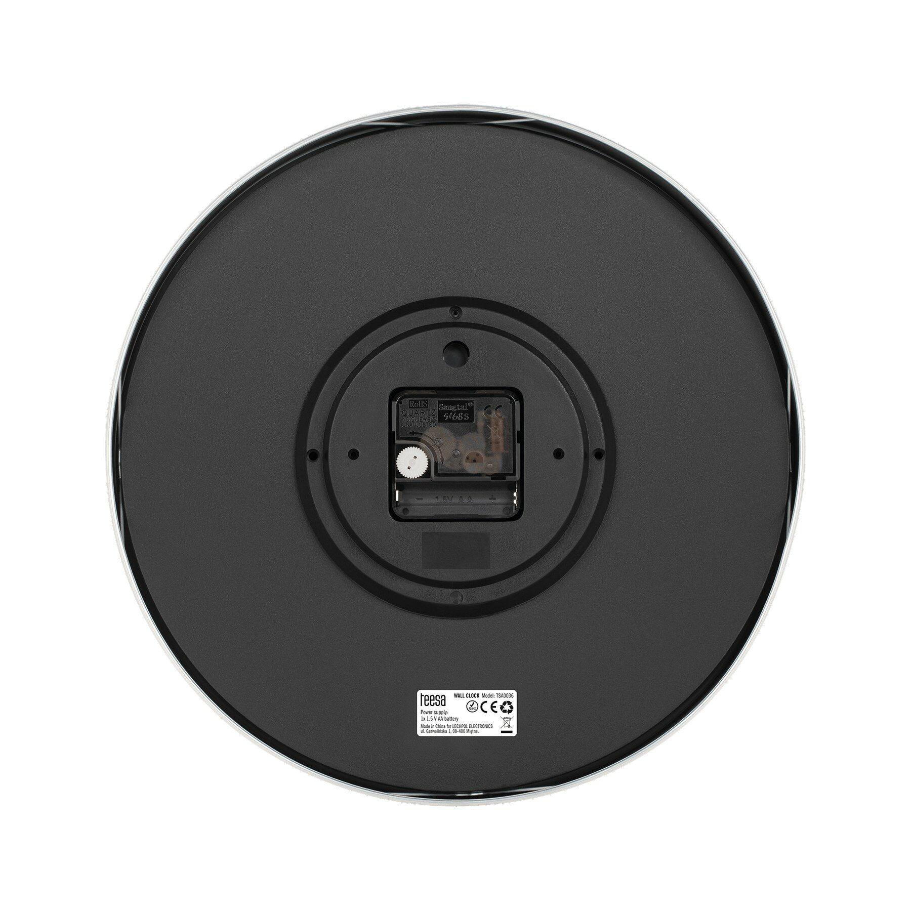 De TSA0036 heeft slechts één AA-batterij nodig om goed te werken. U kunt de klok dan ook overal ophangen; er is geen stopcontact nodig.