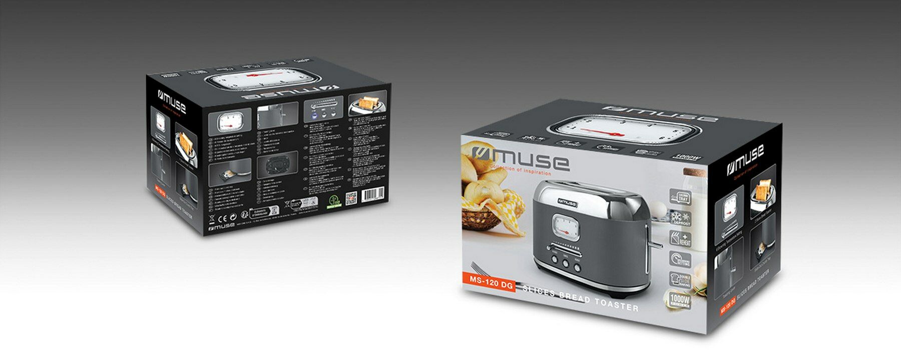 Met de fraai vormgegeven MS-120DG broodrooster van Muse zet u heerlijke toast op tafel. Deze in retrostijl uitgevoerde broodrooster is geschikt voor twee toasts. De MS-120DG is uitgerust met zes roosterstanden, die worden weergegeven op het analoge display. Ook bevat het apparaat een stopknop, waarmee u het roosteren al voor de eindtijd kunt stoppen. Naast het roosteren, kunt u ook brood ontdooien. Daarnaast vergemakkelijkt de uittrekbare kruimellade het schoonmaken.