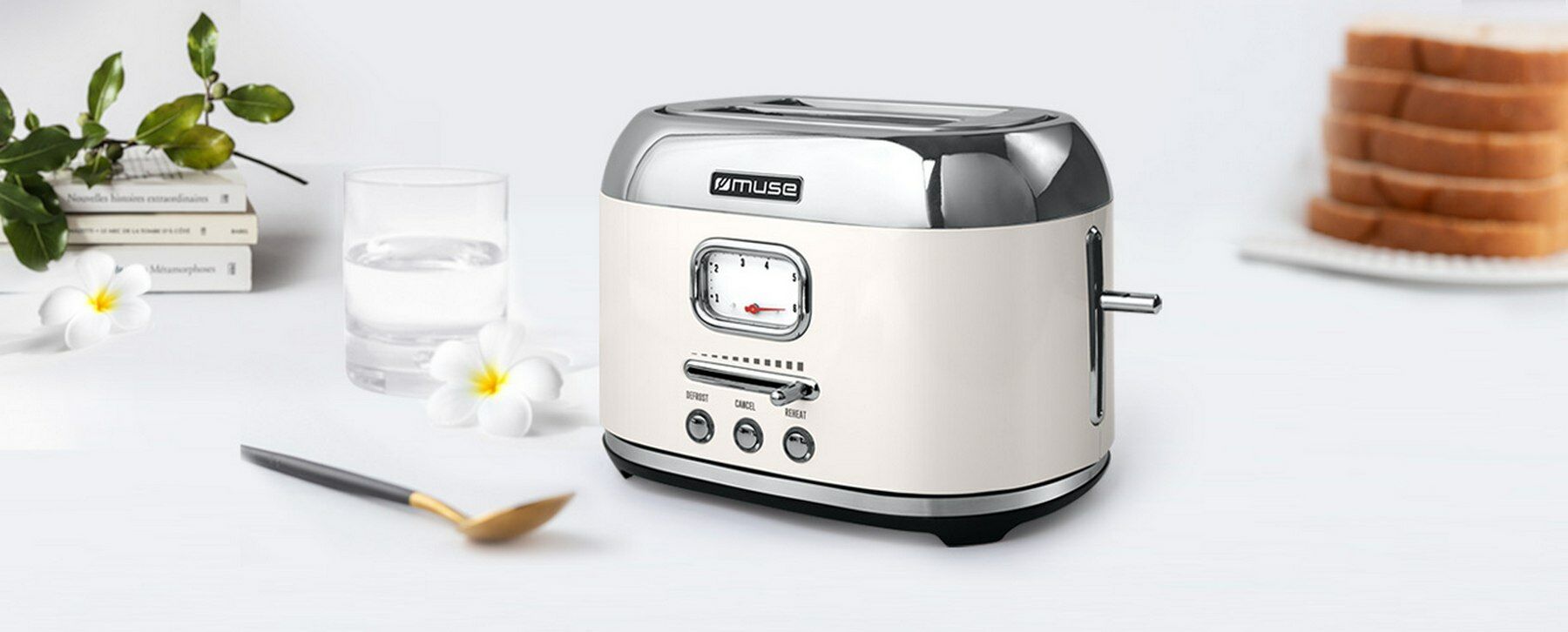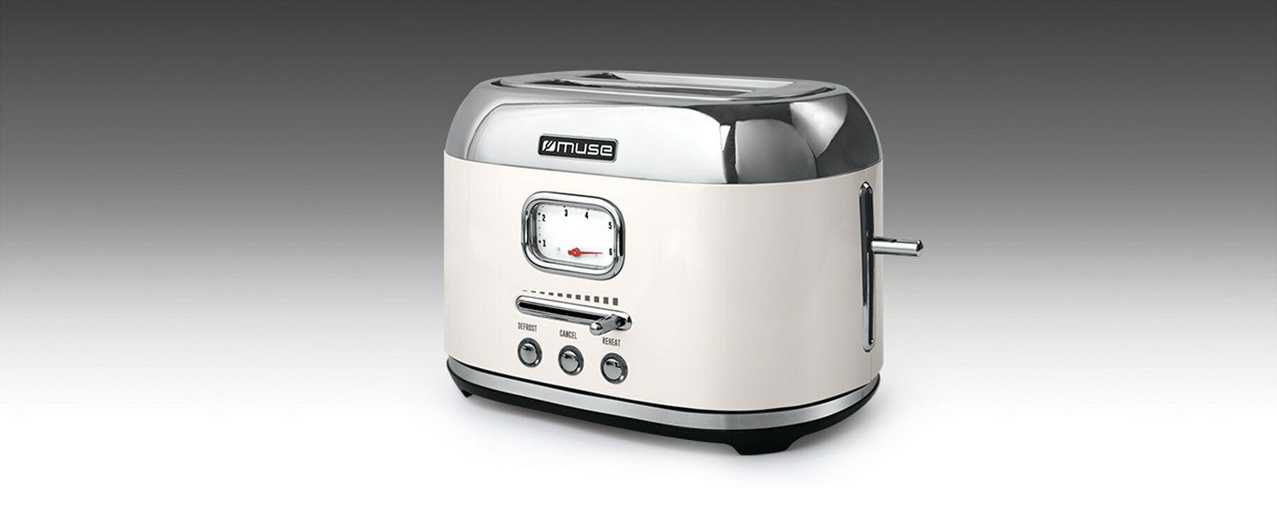 Met de fraai vormgegeven MS-120SC broodrooster van Muse zet u heerlijke toast op tafel. Deze in retrostijl uitgevoerde broodrooster is geschikt voor twee toasts. De MS-120SC is uitgerust met zes roosterstanden, die worden weergegeven op het analoge display. Ook bevat het apparaat een stopknop, waarmee u het roosteren al voor de eindtijd kunt stoppen. Naast het roosteren, kunt u ook brood ontdooien. Daarnaast vergemakkelijkt de uittrekbare kruimellade het schoonmaken.