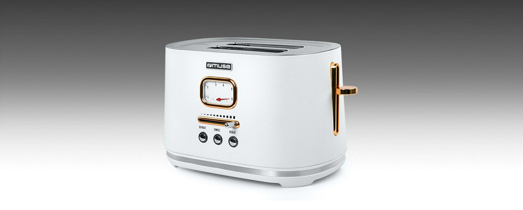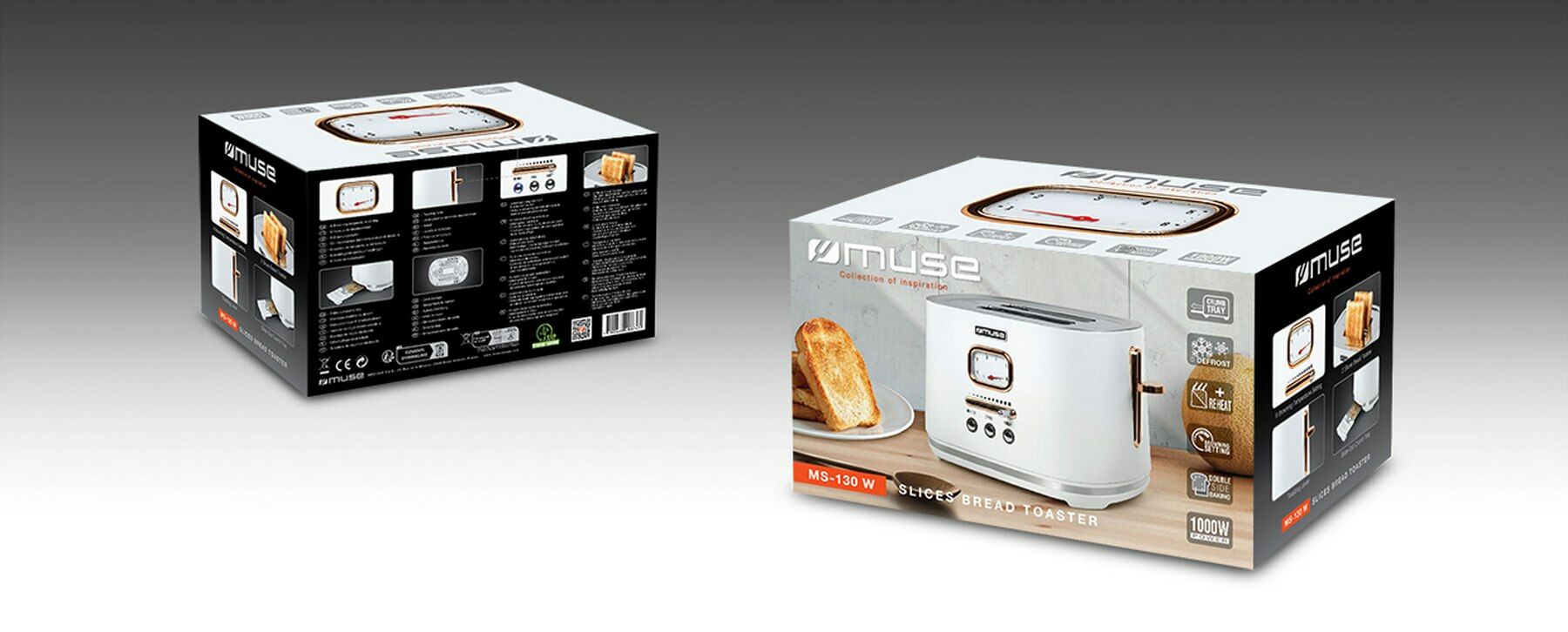 Met de fraai vormgegeven MS-130W broodrooster van Muse zet u heerlijke toast op tafel. Deze in retrostijl uitgevoerde broodrooster is geschikt voor twee toasts. De MS-130W is uitgerust met zes roosterstanden, die worden weergegeven op het analoge display. Ook bevat het apparaat een stopknop, waarmee u het roosteren al voor de eindtijd kunt stoppen. Naast het roosteren, kunt u ook brood ontdooien. Daarnaast vergemakkelijkt de uittrekbare kruimellade het schoonmaken.