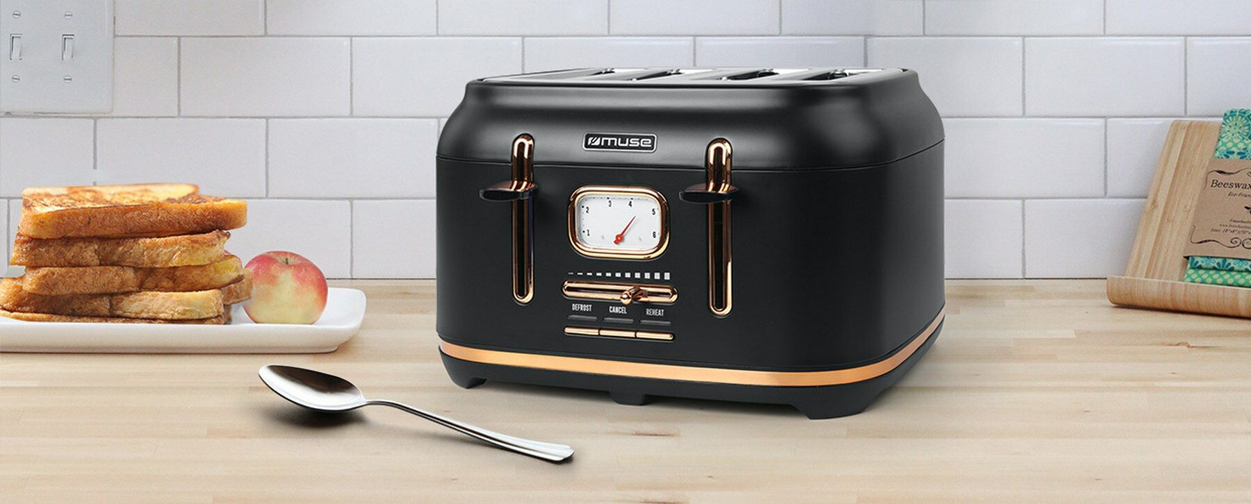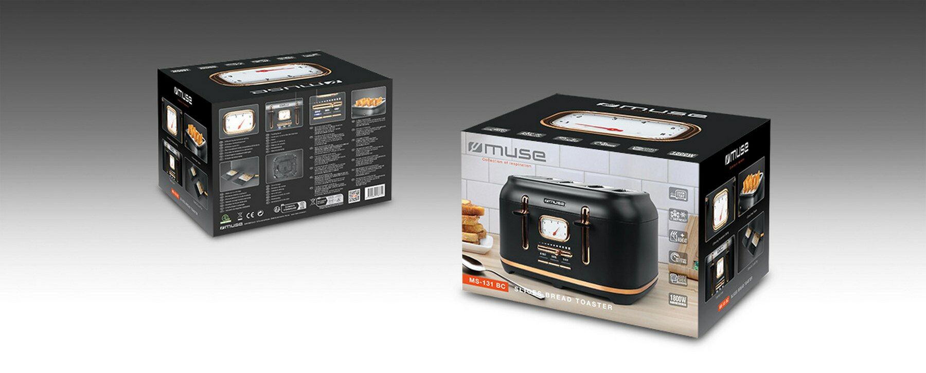 Met de fraai vormgegeven MS-131BC broodrooster van Muse zet u heerlijke toast op tafel. Deze in retrostijl uitgevoerde broodrooster is geschikt voor maar liefst vier toasts. De MS-131BC is uitgerust met zes roosterstanden, die worden weergegeven op het analoge display. Ook bevat het apparaat een stopknop, waarmee u het roosteren al voor de eindtijd kunt stoppen. Naast het roosteren, kunt u ook brood ontdooien. Daarnaast vergemakkelijken de uittrekbare kruimellades het schoonmaken.