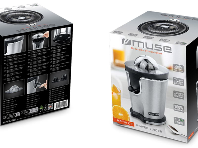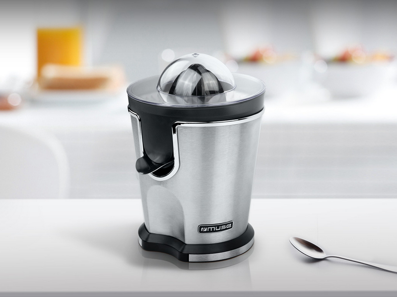 Voor uw dagelijkse portie vitaminen! De Muse MS-10 CP citruspers is ideaal voor in de kleine keuken dankzij het compacte ontwerp. Sinaasappels, mandarijnen, grapefruit, citroenen of limoenen, deze citruspers is er voor groot en klein fruit. Met een vermogen van 1600 Watt heeft u in enkele seconden een vitaminerijke vruchtensap met zoveel pulp als u lekker vindt. De Muse MS-10CP duurzame citruspers ziet er met zijn RVS uitvoering erg chique uit. Alle onderdelen van de citruspers zijn gemakkelijk te reinigen. Specificaties: • Roestvrijstalen behuizing • Roestvrijstalen filter en filtermond • Transparant deksel • Plastic basis met roestvrijstalen deco • Chroom deco langs de rand van de behuizing • 2 stukis plastic cones meegeleverd • Netvoeding: 220-240 V / 50-60 Hz • Afmeting product: 16,7 x 15,7 x 23,6 cm (BxDxH) • Gewicht incl. verpakking: 2,27 kg • EAN-code: 3700460209209