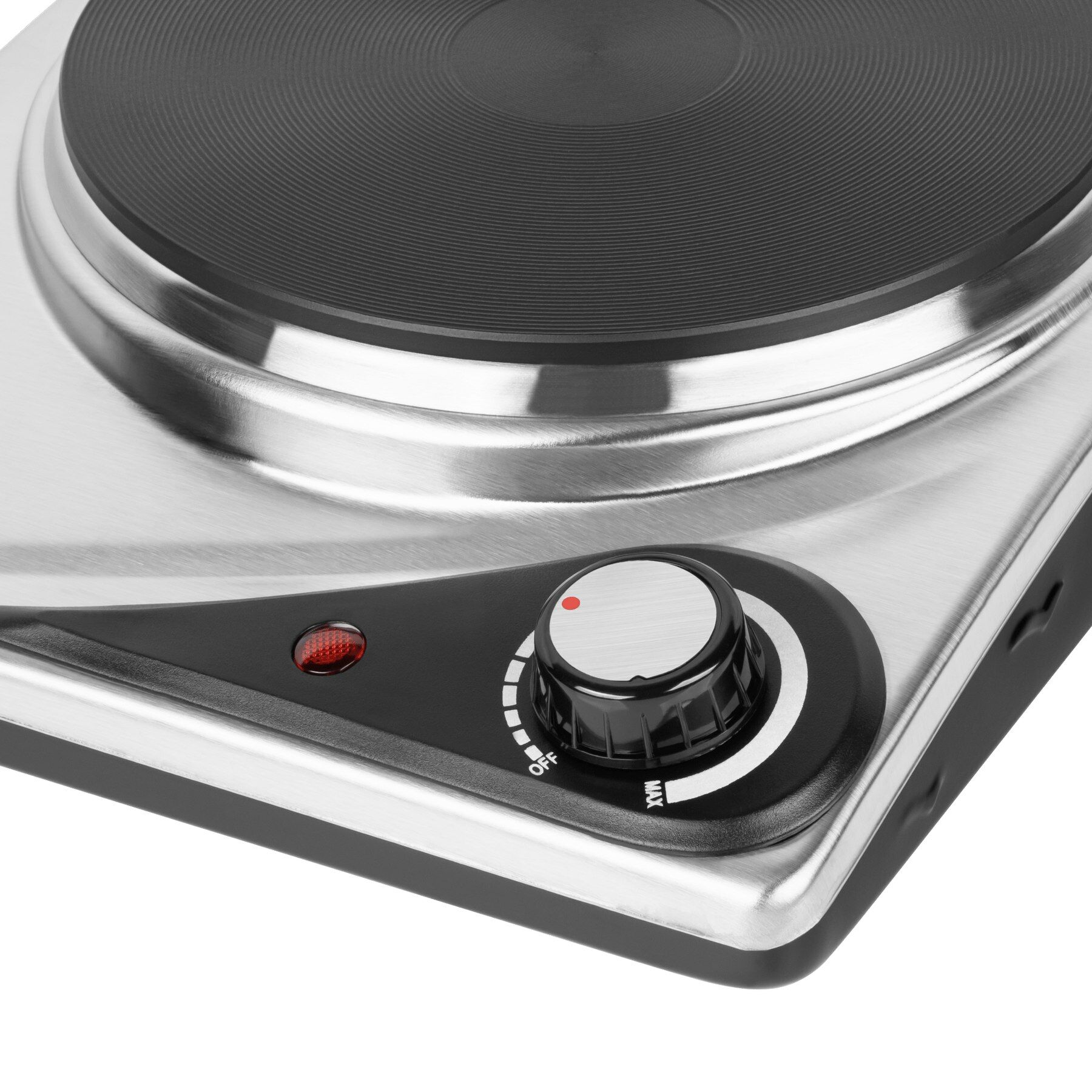 De maximale temperatuur van 650° C maakt het apparaat onder andere geschikt om snel water te koken voor thee en koffie of om een eitje te bakken voor het ontbijt. De kookplaat is eenvoudig te bedienen met de thermostaatknop en met het indicatielampje weet u altijd of de kookplaat is ingeschakeld en/of al op temperatuur is.