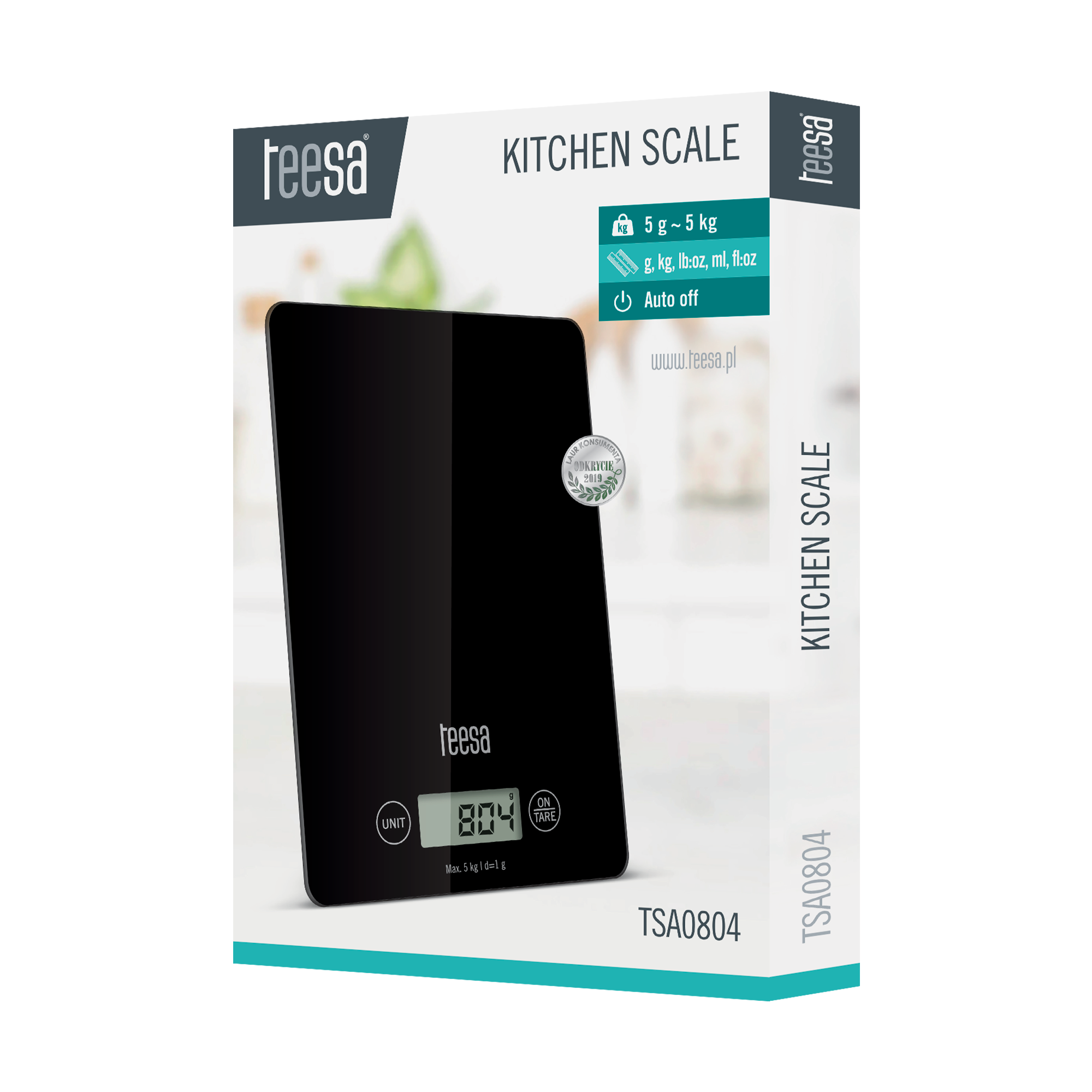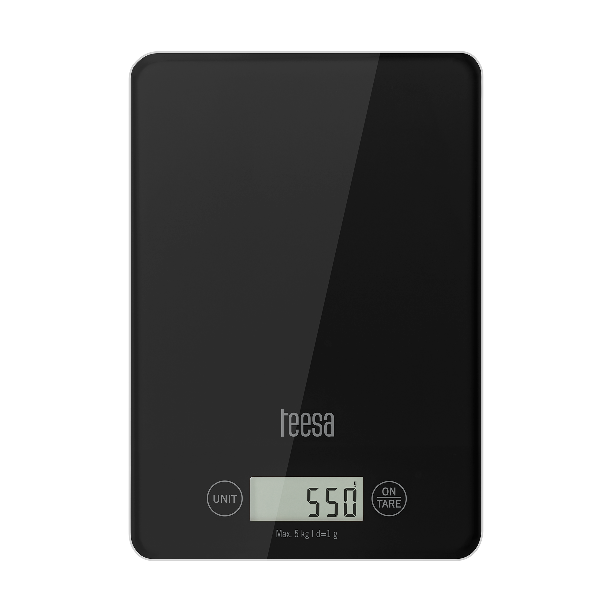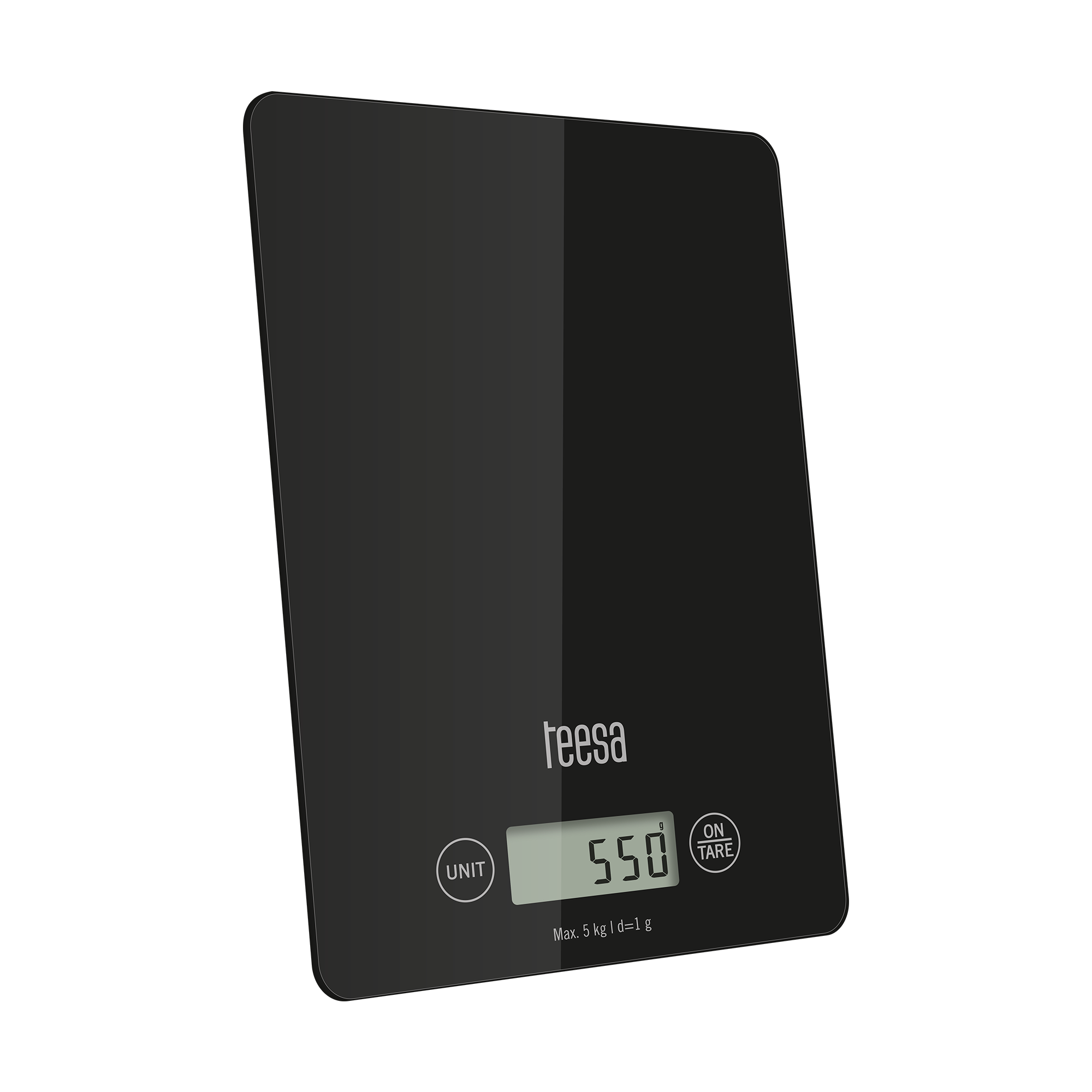 Klein, maar krachtig! De TSA0804B keukenweegschaal van Teesa met zwart gehard glas is bij uitstek geschikt voor precisiemetingen tot op 0,1 gram nauwkeurig. De keukenweegschaal heeft een maximale belasting van 5 kg en meet in vier verschillende meeteenheden die gemakkelijk zijn af te lezen van het grote LCD-display. Tevens is de TSA0804B keukenweegschaal uitgerust met rubberen voetjes om een goede stabiliteit te garanderen. Door het strak zwarte design past deze keukenweegschaal in elke keuken. Specificaties: • Keukenweegschaal met LCD-display • Belasting: max. 5 kg, min. 5 g • Nauwkeurigheid: 1 g • Eenheden: GR, OZ, ML, LB • Auto-off-functie • Tarrafunctie • Weegplateau van gehard glas • Batterij: 1 x CR2032 • Afmeting product: 16,0 x 23,0 x 3,0 cm (BxDxH) • Gewicht incl. verpakking: 0,5 kg • EAN-code: 5901890111768