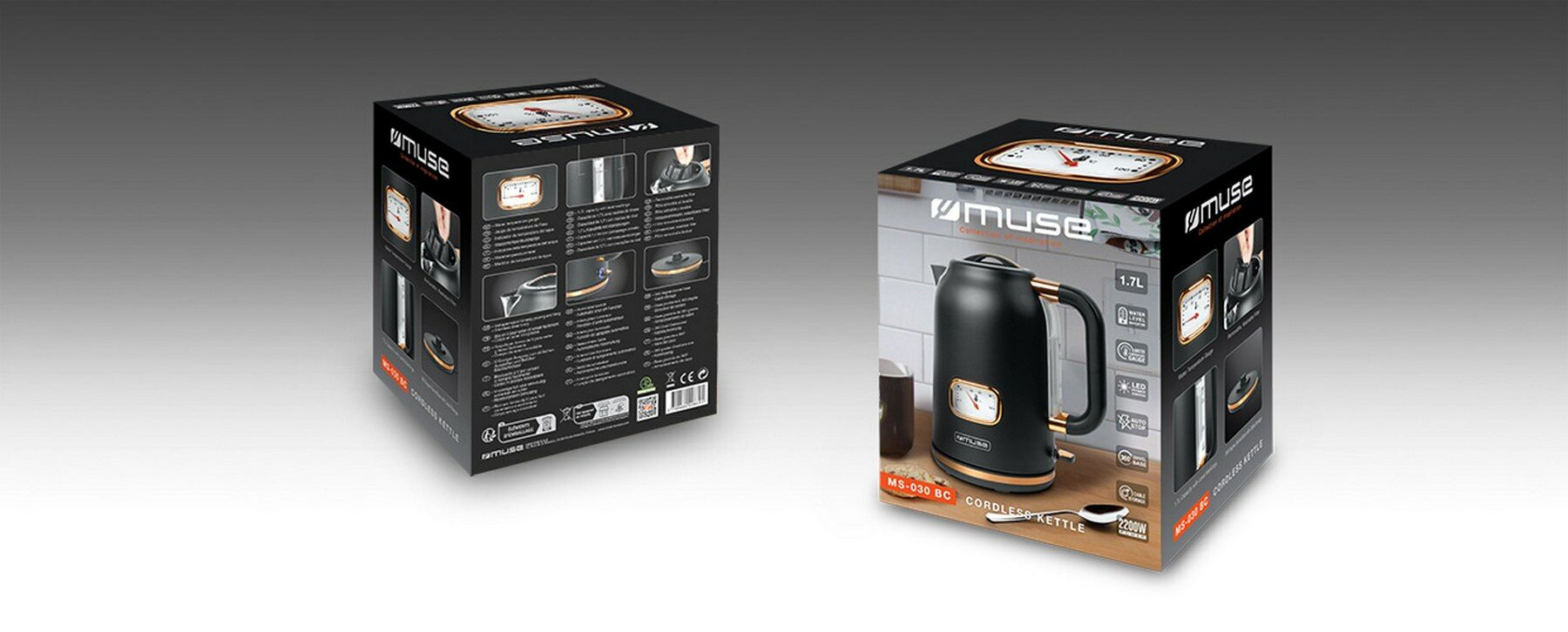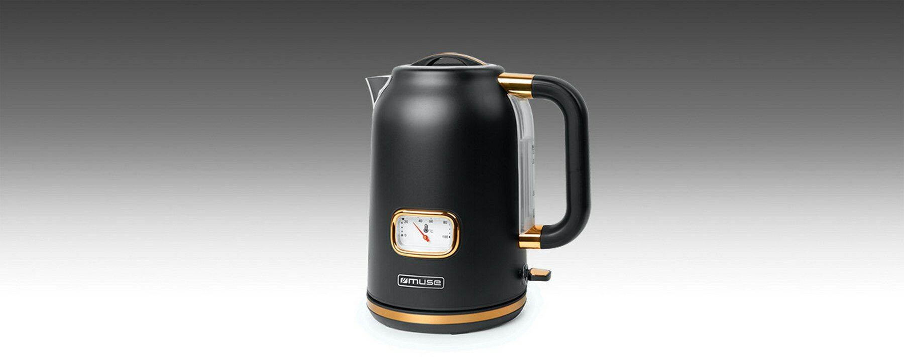 De stijlvolle MS-030BC waterkoker van Muse heeft een inhoud van 1,7 liter. Deze in retrostijl uitgevoerde waterkoker combineert moderne techniek met vintage design. De MS-030BC is uitgevoerd met waterniveau-aanduiding en een analoge temperatuurmeter. Ook aan de veiligheid is gedacht; de waterkoker schakelt automatisch uit indien er geen water in het apparaat zit en als het water kookt.
