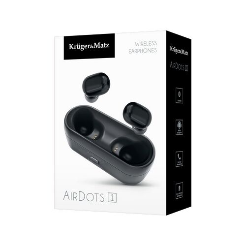Op zoek naar de ideale draadloze hoofdtelefoon? Kies dan voor de Krüger&Matz KMPAD1 Air Dots en u bent gegarandeerd van een geweldig geluid en veel luisterplezier. De 5.0 bluetoothtechnologie zorgt namelijk voor een stabiele en snelle verbinding met een laag stroomverbruik. Met deze Air Dots kunt u tot wel vier uur ongestoord naar muziek luisteren. Daarnaast kunt u de dots eenvoudig opladen en tegelijkertijd beschermen in de speciale opbergetui met ingebouwde 300 mAh batterij. De in-ear Air Dots beschikken over een ingebouwde microfoon, waardoor u kunt bellen zonder uw telefoon in uw hand te houden. Dus makkelijk voor in de auto. Daarnaast is de KMPAD1 ook ideaal voor gebruik tijdens het sporten. Door het bereik van 10 meter zal de afstand u niet belemmeren in het uitvoeren van uw oefeningen. Tenslotte kunt u via de KMPAD1 oordopjes ook uw mobiele apparaten op afstand bedienen. Via beide dots kunt u het volume regelen, een volgend nummer selecteren of een gesprek beantwoorden of beëindigen. Ideaal dus voor zowel links- als rechtshandigen; en voor iedereen die houdt van gemak.