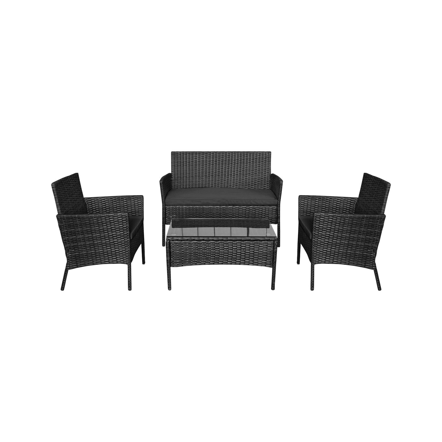 Wilt u een gezellige plek creëren om te relaxen in de tuin of op het terras? Kies dan de TSA9008 van Teesa, een 4-delige zwarte rotan tuinset, bestaande uit twee stoelen en bank en een tafel.