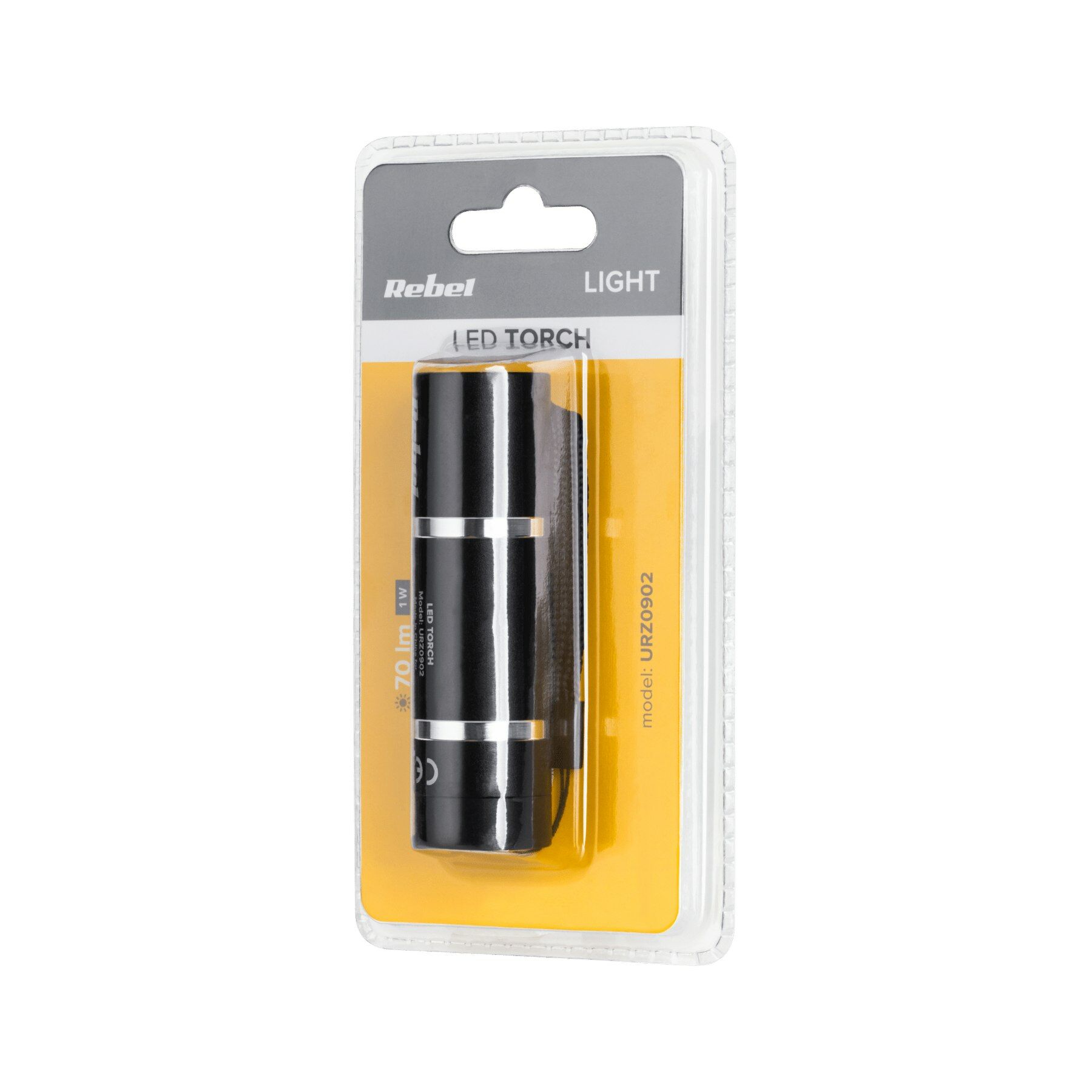 De URZ0902 is een compacte LED-zaklamp van Rebel, die u overal kunt gebruiken. Gewoon thuis of tijdens het kamperen, survivallen, en wandelen. Deze aluminium zaklamp is voorzien van LED-technologie en levert door het lage stroomverbruik tot wel 5 uur licht. Met de URZ0902 aluminium zaklamp van Rebel tast u nooit meer in het duister!