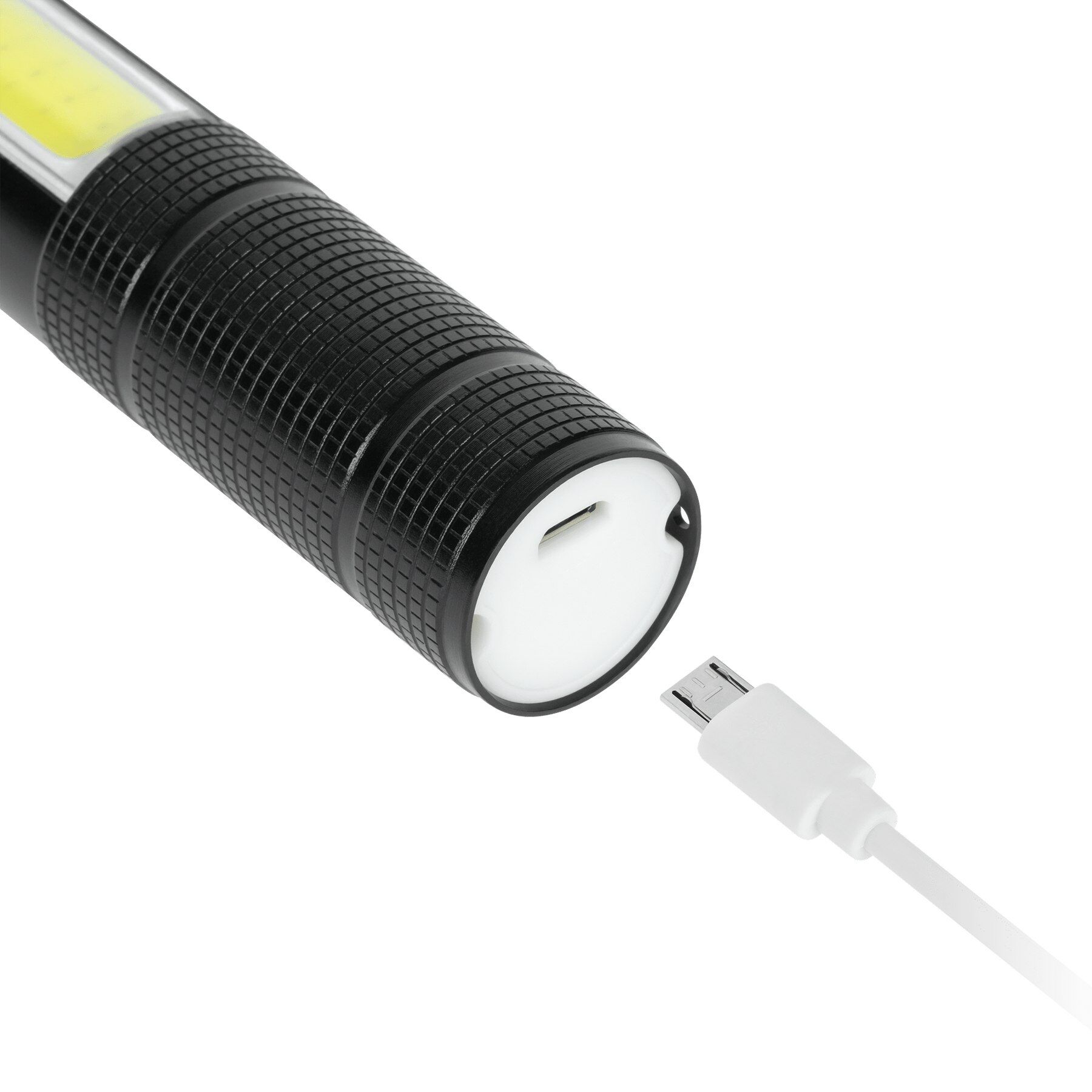 De URZ0941 LED-zaklamp heeft een ingebouwde accu met een capaciteit van 1.200 mAh. De lamp is zuinig in gebruik en gaat tot 3,5 uur mee. Als de lamp leeg is, laadt u deze eenvoudig op met de meegeleverde kabel.