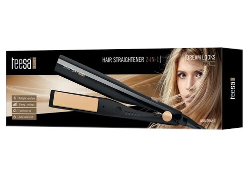 Kunt u niet kiezen tussen een krultang of een stijltang? Met de TSA0565 DREAM LOOKS PRO 700 van Teesa hoeft dat ook niet. De TSA0565 geeft u twee apparaten voor de prijs van 1. Dankzij de speciale constructie kunt u uw haar niet alleen perfect steil maken, maar ook krullen. De stijltang heeft vijf temperatuurstanden en is daarmee geschikt voor ieder haartype. Het snoer draait 360° om zijn as en past zich telkens aan de positie van uw hand aan. De TSA0565 is uitgerust met een automatische uitschakelfunctie. Zelfs als u de stijltang aan laat staan, schakelt deze zichzelf na 30 minuten uit; wel zo veilig!