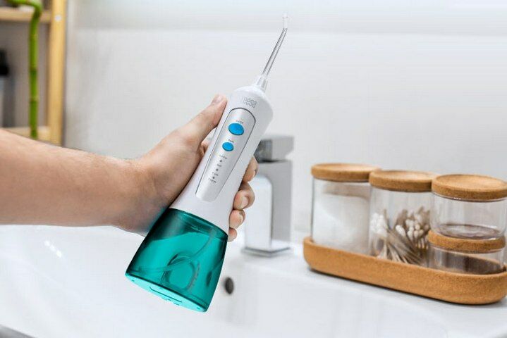• Draadloze, elektrische monddouche voor grondige reiniging van het gebit