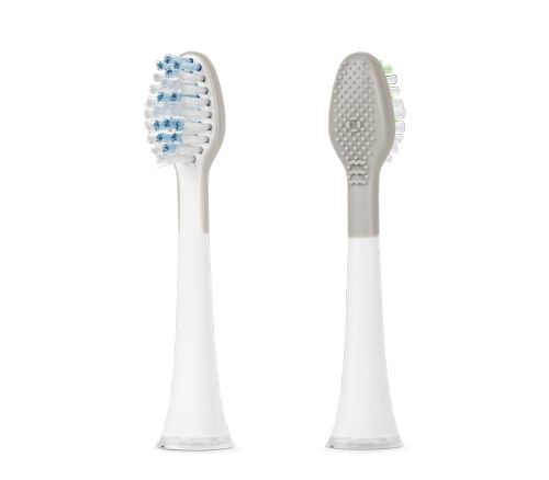 Twee opzetborstels voor de sonische tandenborstels TSA8010 en TSA8011 van Teesa. De opzetborstels zijn ook per twee stuks verkrijgbaar in soft (TSA8014) en medium (TSA8012).