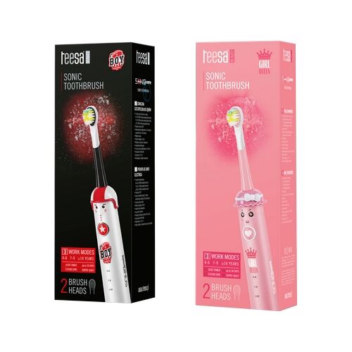De TSA8005 is een professionele sonische tandenborstel van Teesa voor kinderen. Dankzij de drie standen (4-6 jaar, 7-9 jaar en >10 jaar) groeit deze junior tandenborstel met uw kind mee. De sonic-technologie staat garant voor meer poetsbewegingen per minuut dan de traditionele roterende elektrische tandenborstel. Daarom zullen de tanden van uw kinderen perfect schoon worden, ook op moeilijk bereikbare plaatsen. De TSA8005 sonische tandenborstel reinigt de tanden van uw kind met behulp van zachte, maar effectieve, pulserende bewegingen. Elke 30 seconden herinnert deze slimme tandenborstel uw kind eraan om te wisselen. Na twee minuten schakelt de TSA8005 automatisch uit. Het apparaat is verder voorzien van een krachtige batterij, waardoor deze zelfs 30 dagen op 1 lading mee kan gaan. Perfect dus voor een gezonde witte glimlach.