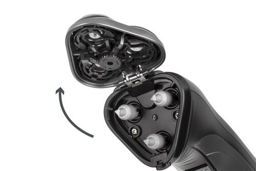 Het scheerapparaat is tevens voorzien van een uitschuifbare trimmer en een ingebouwde batterij die tot 45 minuten werkt.