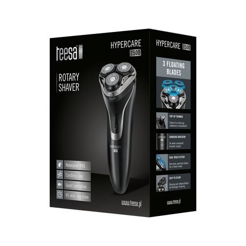 Bent u het ook zat, die geïrriteerde huid? Ga dan voor de TSA0569 HYPERCARE T500 van Teesa. Het speciale en mooi vormgegeven ontwerp van dit scheerapparaat zorgt voor een extreem snelle en nauwkeurige scheerbeurt. De TSA0569 is uitgerust met drie roterende koppen met roestvrijstalen mesjes. De dubbele snijbladen passen zich perfect aan de vorm van het gezicht aan en kunnen gemakkelijk het hardste gezichtshaar aan.