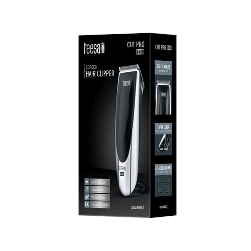 Dankzij de TSA0527 CUT PRO X400 tondeuse hoeft u niet meer elke week naar de kapper om uw kapsel bij te werken! Met de kwalitatieve messen van de TSA0527 kunt u altijd snel en gemakkelijk uw haar stijlen. Bij de tondeuse worden vier kammen (3, 6, 9 en 12 mm) meegeleverd. Daarnaast beschikt de tondeuse over vier snijstanden. De TSA0527 beschikt tevens over een handige ophanghaak, zodat u de haartrimmer gemakkelijk kunt ophangen in de badkamer.
