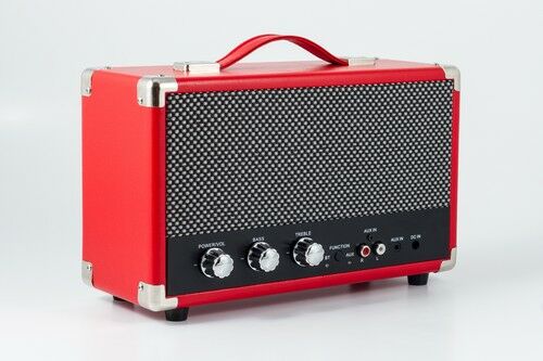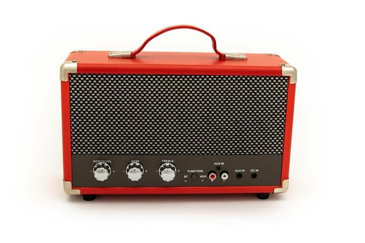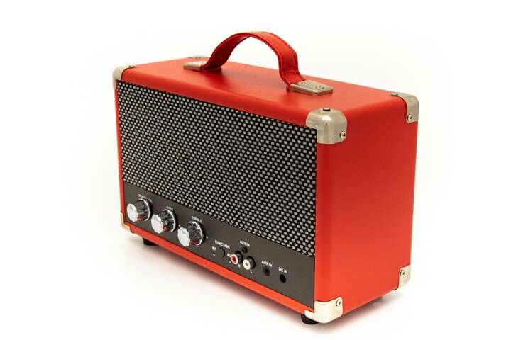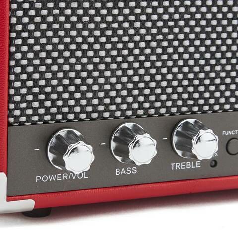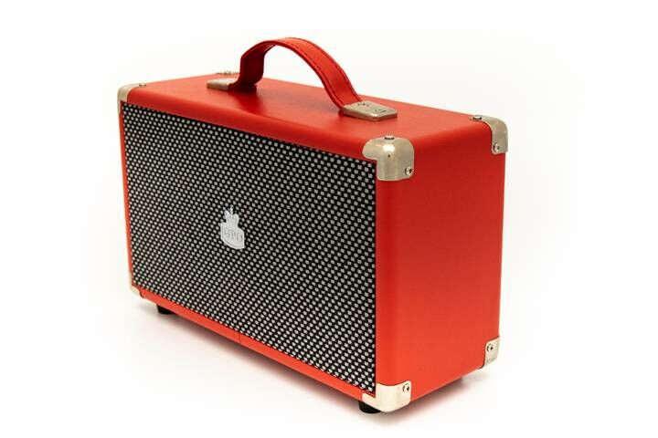 Met de WESTWOODRED van GPO haalt u een compacte bluetooth speaker in huis! Deze speaker is met haar stoffen front en metalen hoekbeschermers fraai afgewerkt , wat de de speaker een echte retro look geeft. Bovendien is de WESTWOOD door de stevige lederen handgreep eenvoudig te verplaatsen. Deze bluetooth speaker is ontworpen in de stijl / kleurstelling van de GPO ATTACHE platenspelers en maakt de GPO-familie van platenspelers en opbergkoffers helemaal compleet. Sluit uw platenspeler via de AUX-aansluiting op de speaker aan en u kunt op de speaker de bas, treble en het volume regelen, zoals u dit graag wenst. Uiteraard is deze WESTWOOD speaker ook te gebruiken als stand-alone (bluetooth) speaker. Specificaties: • Bluetooth • Bas-, treble- en volumeregelaars • AUX-in-aansluiting • Stevige lederen handgreep • Uitgangsvermogen: 2x 5 Watt (RMS) • Netvoeding: AC 230 V / 50 Hz • Afmeting product: 26,0 x 11,0 x 17,5 cm (BxDxH) • Gewicht incl. verpakking: 2,49 kilogram • EAN-code: 5060237570825