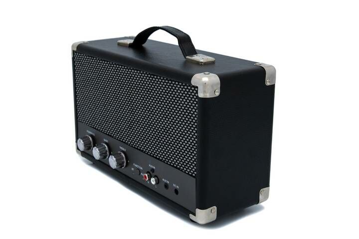 Met de WESTWOODBLA van GPO haalt u een compacte bluetooth speaker in huis! Deze speaker is met haar stoffen front en metalen hoekbeschermers fraai afgewerkt , wat de de speaker een echte retro look geeft. Bovendien is de WESTWOOD door de stevige lederen handgreep eenvoudig te verplaatsen. Deze bluetooth speaker is ontworpen in de stijl / kleurstelling van de GPO ATTACHE platenspelers en maakt de GPO-familie van platenspelers en opbergkoffers helemaal compleet. Sluit uw platenspeler via de AUX-aansluiting op de speaker aan en u kunt op de speaker de bas, treble en het volume regelen, zoals u dit graag wenst. Uiteraard is deze WESTWOOD speaker ook te gebruiken als stand-alone (bluetooth) speaker. Specificaties: • Bluetooth • Bas-, treble- en volumeregelaars • AUX-in-aansluiting • Stevige lederen handgreep • Uitgangsvermogen: 2x 5 Watt (RMS) • Netvoeding: AC 230 V / 50 Hz • Afmeting product: 26,0 x 11,0 x 17,5 cm (BxDxH) • Gewicht incl. verpakking: 2,49 kilogram • EAN-code: 5060237570818