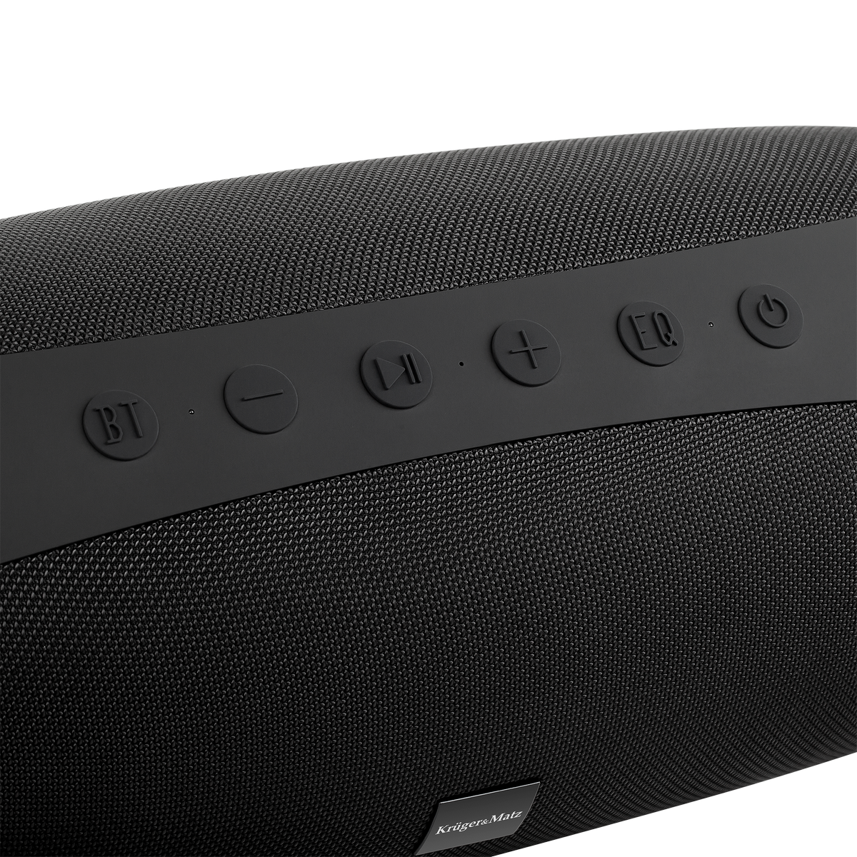 Draadloze Bluetooth-luidspreker Overweeg je er een te kopen, maar weet je nog niet welke Bluetooth-speaker je moet kiezen ? De Kruger&Matz Explorer+ is een grote Bluetooth-speaker die elk feestje op gang brengt. Hij is uitgerust met drie drivers – twee tweeters en één woofer – waardoor hij muziek afspeelt met een frequentiebereik van 60 Hz tot 18 kHz. Het apparaat is uitgerust met Bluetooth 5.0- technologie , wat niet alleen een stabiele verbinding garandeert, maar ook een laag stroomverbruik. Een ander groot voordeel is de equalizer , die ervoor zorgt dat je muziek geweldig klinkt, ongeacht de akoestiek van de ruimte. Wil je het geluidsvermogen verdubbelen? Met de True Wireless Stereo- functie kun je twee draadloze Kruger&Matz Explorer+-speakers koppelen. Draadloze luidspreker met microfoon Muziek die je afspeelt vanaf je smartphone of tablet is niet de enige audiobron die je kunt gebruiken. Je hebt diverse poorten tot je beschikking – een USB-poort, een geheugenkaartlezer en een AUX-ingang – waarmee je je favoriete nummers ook vanaf andere media kunt afspelen. De draagbare speaker Explorer+ heeft ook een extra USB-poort om externe apparaten op te laden . Deze draagbare speaker ondersteunt ook spraakoproepen , dus hij kan indien nodig een speakerphone vervangen. Waterdichte luidspreker Op zoek naar een spatwaterdichte Bluetooth-speaker die perfect is voor een poolparty? De Kruger&Matz Explorer+ draagbare speaker heeft een IPX7-classificatie , wat betekent dat hij tot 1 meter diep onder water kan worden gedompeld. Je hoeft je geen zorgen meer te maken over schade aan je apparaat als er water op spat. Specificaties: • Waterbestendig; IPX7 classificatie • Bluetooth 5.0, met een bereik tot 10 meter • 3 speakers; 2 tweeters (92mm) en 1 woofer (133,5 mm) • frequentiebereik van 60 Hz tot 18 kHz • Ingebouwde microfoon • Handsfree modus • Mogelijkheid voor aansluiten van 2 externe speakers • Aansluitingen; Micro SD, AUX, USB port • Bluetooth range: up to 10 m • Mogelijkheid om externe apparaten op te laden • Vermogen: 2 x 15 W + 40 W • Batterij: 7,4 V; 6000mAh • Netvoeding: 100 – 240V; 50/60Hz • Meegeleverd AC-oplader, 3,5 mm jackkabel, riem, gebruikershandleiding • Afmetingen: 53,0 x 25,0 x 25,0 cm (BxDxH) • Gewicht incl. verpakking: 5,3 kg • EAN-code: 5901890054379