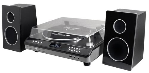 Met het Soundmaster PL979SW muziekcenter uit de Elite Line kunt u uw oude platen weer van zolder halen en deze weer naar hartenlust afspelen. Dit muziekcenter biedt u tevens de mogelijkheid om uw platen direct te digitaliseren met de encodingfunctie. De platenspeler is uitgerust met een professioneel Audio Technica element. Dit element zorgt samen met de twee meegeleverde luidsprekers voor een uitstekende geluidsweergave. De Soundmaster PL979SW is verder uitgerust met een DAB+/FM-radio, een CD-speler en een USB-aansluiting. De meegeleverde afstandsbediening maakt de bediening zeer eenvoudig.