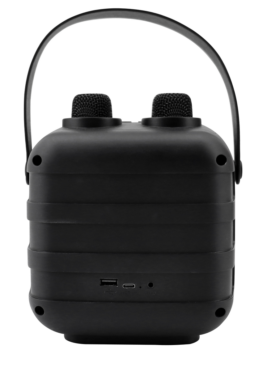 Met de Soundmaster BT2024SW is er geen feestje meer hetzelfde! Transformeer elke locatie in een karaokeparadijs met deze mooie Karaoke speaker van Soundmaster. De BT2024SW wordt geleverd met twee Bluetooth-microfoons met stemvervormer, waardoor het feest niet lang genoeg kan duren. De speaker is voorzien van kleurrijk discolicht welke projecteert op de maten van de muziekbeat. Met de meegeleverde USB-C kabel is het opladen van deze speaker een fluitje van een cent. Kortom, voor weinig geld een onvergetelijke feestervaring met deze Karaoke box, de Soundmaster BT2024SW! Specificaties • Bluetooth connectiviteit (ontvangst) • Gekleurd discolicht welke ook reageert op de beat van de muziek • Bluetooth microfoon met ingebouwde 3,7V / 500 mAh batterij, volumeregeling, equalizer, stemwisselaar en USB-C (oplaad) aansluiting. • 3,5 mm AUX in aansluiting • USB-C ingang • Ingebouwde 3,7 V / 3000 mAh lithiumbatterij • Uitgangsvermogen : 5 Watt (RMS) • Meegeleverd: 2 stuks bluetooth microfoon • Afmeting product: 17,0 x 15,0 x 20,0 cm (BxDxH) • Gewicht incl. verpakking: 1,41 kg • EAN-code: 4005425012313