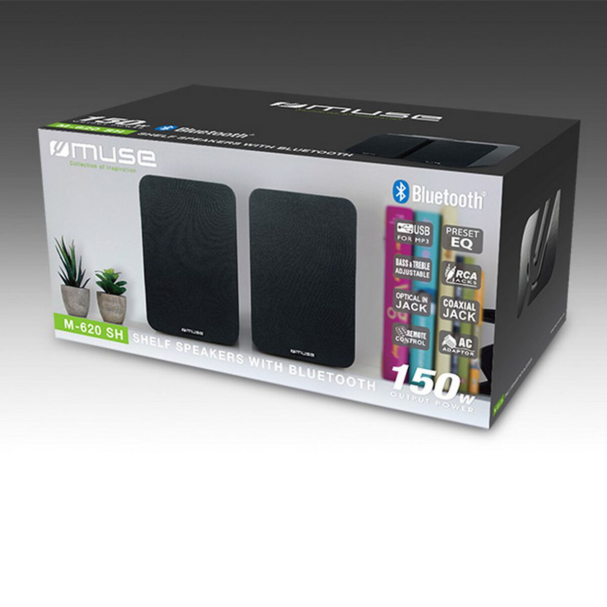 Met deze Muse M-620SH bluetooth boekenplank speakers haalt u hoge kwaliteit in huis qua geluid. Maar niet alleen het geluid, ook het design is een reden om deze bluetooth speakers aan te schaffen. Via Bluetooth streamt u eenvoudig muziek van uw smartphone en tablet naar de twee speakers. Ook biedt de M-620SH de mogelijkheid om externe apparaten via USB, RCA, optisch of de coax kabel te koppelen. Dankzij de meegeleverde afstandsbediening is het bedienen van deze compacte speakers heel eenvoudig.