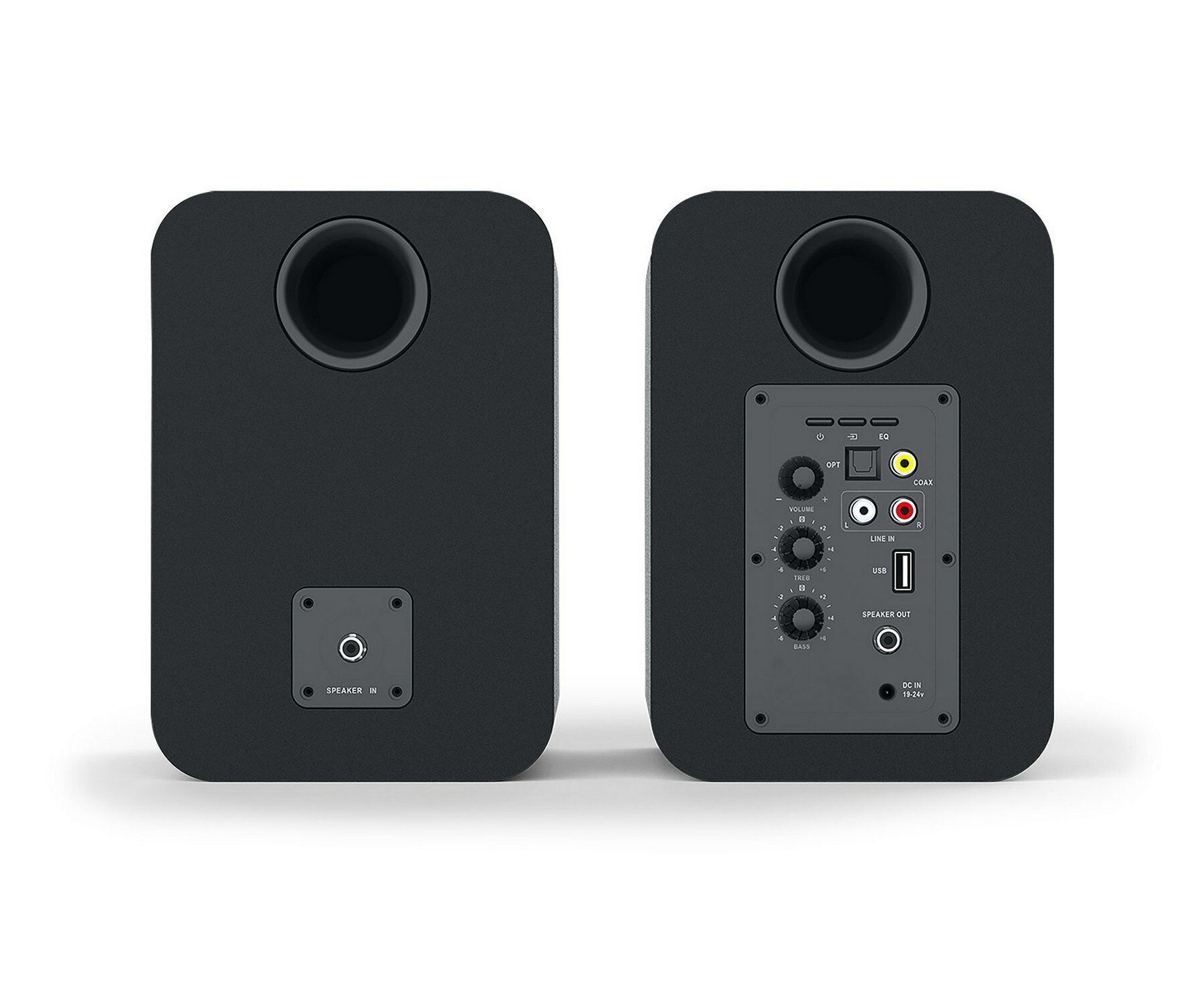 • Regelaars: volume, treble en bass