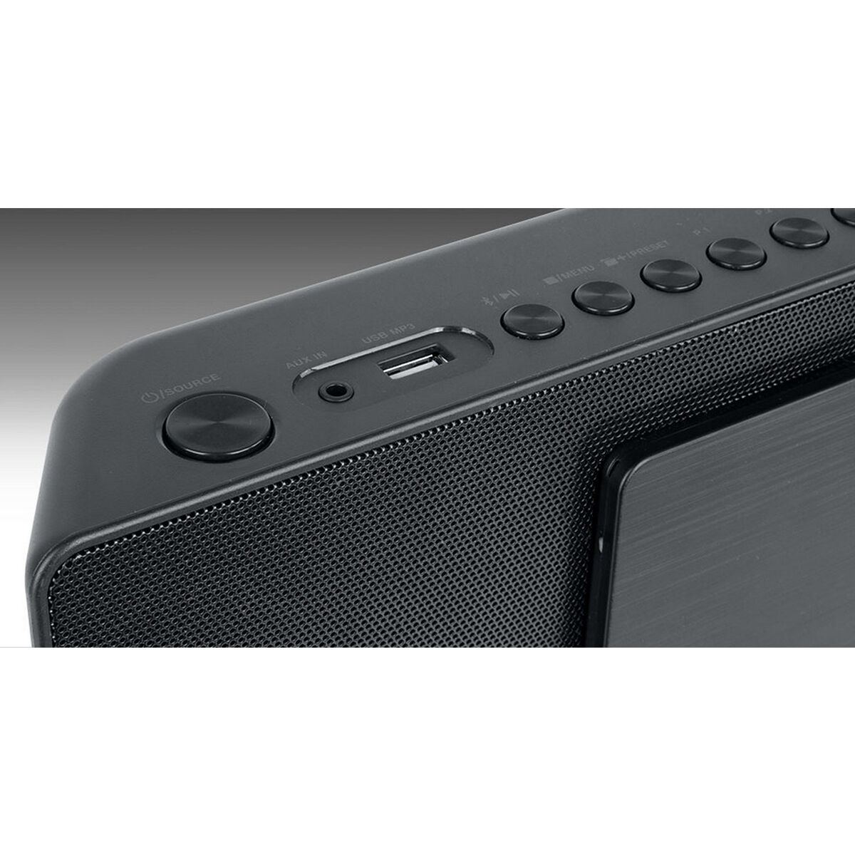 • Aansluitingen: AUX-In, 2x RCA, USB 2.0, FM-antenne en DC