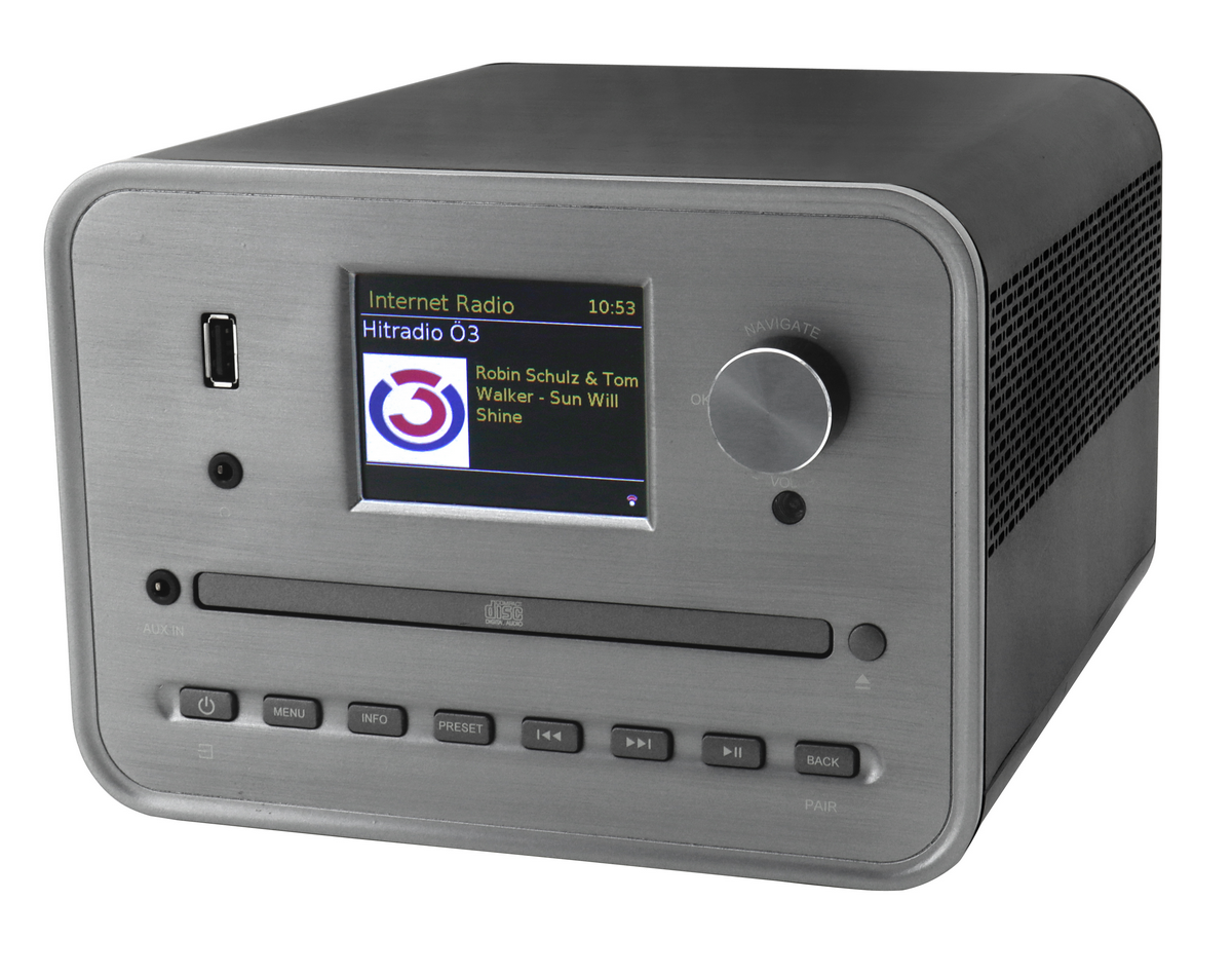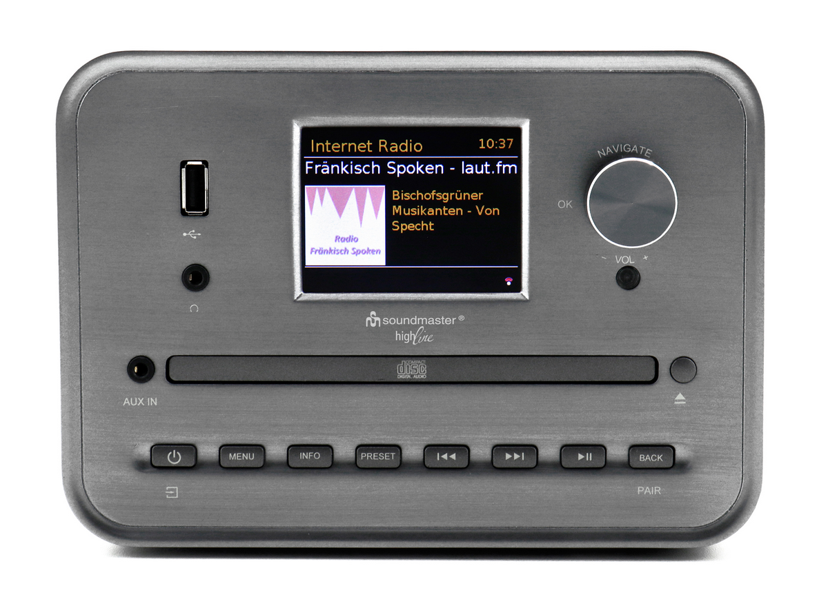 DAB+ radio, CD-speler, Bluetooth connectiviteit, USB-MP3-weergave, en een 2,8-inch kleurenscherm. Met 40 voorkeurzenders, dubbel alarm, slaaptimer en een krachtig uitgangsvermogen van 2 x 7 W RMS biedt dit apparaat indrukwekkende geluidsprestaties en gebruiksgemak, terwijl de UNDOK-app op je mobiele apparaat zorgt voor eenvoudige bediening. Geniet in stijl van je favoriete muziek met de compacte Soundmaster ICD1050SW. Ideaal voor in kantoor, de slaapkamer, of in de keuken. Specificaties • Internetradio met WLAN 2.4/5 GHz- • DAB+/FM-RDS radio • 40 voorkeurzenders • CD, CD-R/RW, CD-MP3 • USB-MP3-weergave • Bluetooth connectiviteit • Bediening via UNDOK APP met mobiele telefoon/tablet • Hoorboekfunctie duslaatste track hervatten • 2,8" kleurenscherm • 3,5 mm Aux-In en hoofdtelefoon aansluiting • Equalizer - voorgeprogrammeerde geluidsinstellingen • Dubbel alarm met weekendfunctie en slaaptimer • Uitgangsvermogen 2 x 7 W RMS • Meegeleverd: afstandsbediening • AC/DC-adapter 12 V/1,5 A incl. • Afmeting product: 19,0 x 23,0 x 13,8 cm (BxDxH) • Gewicht incl. verpakking: 2,39 kg • EAN-code: 4005425011880