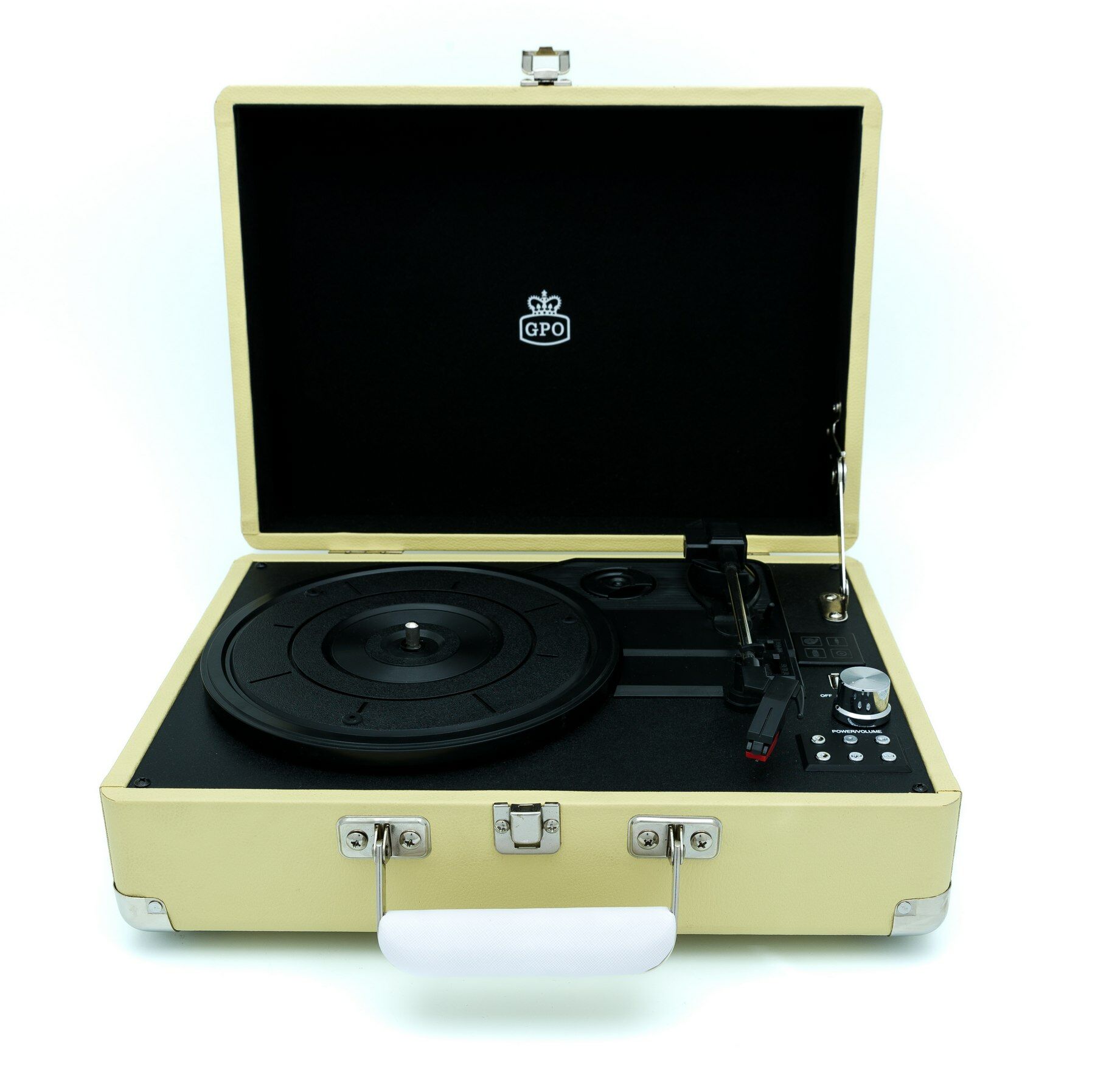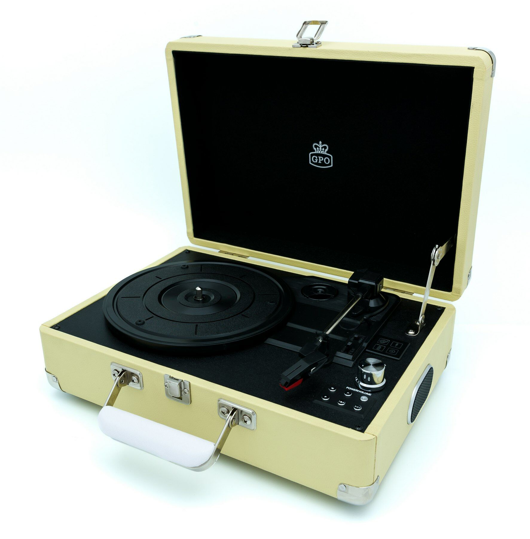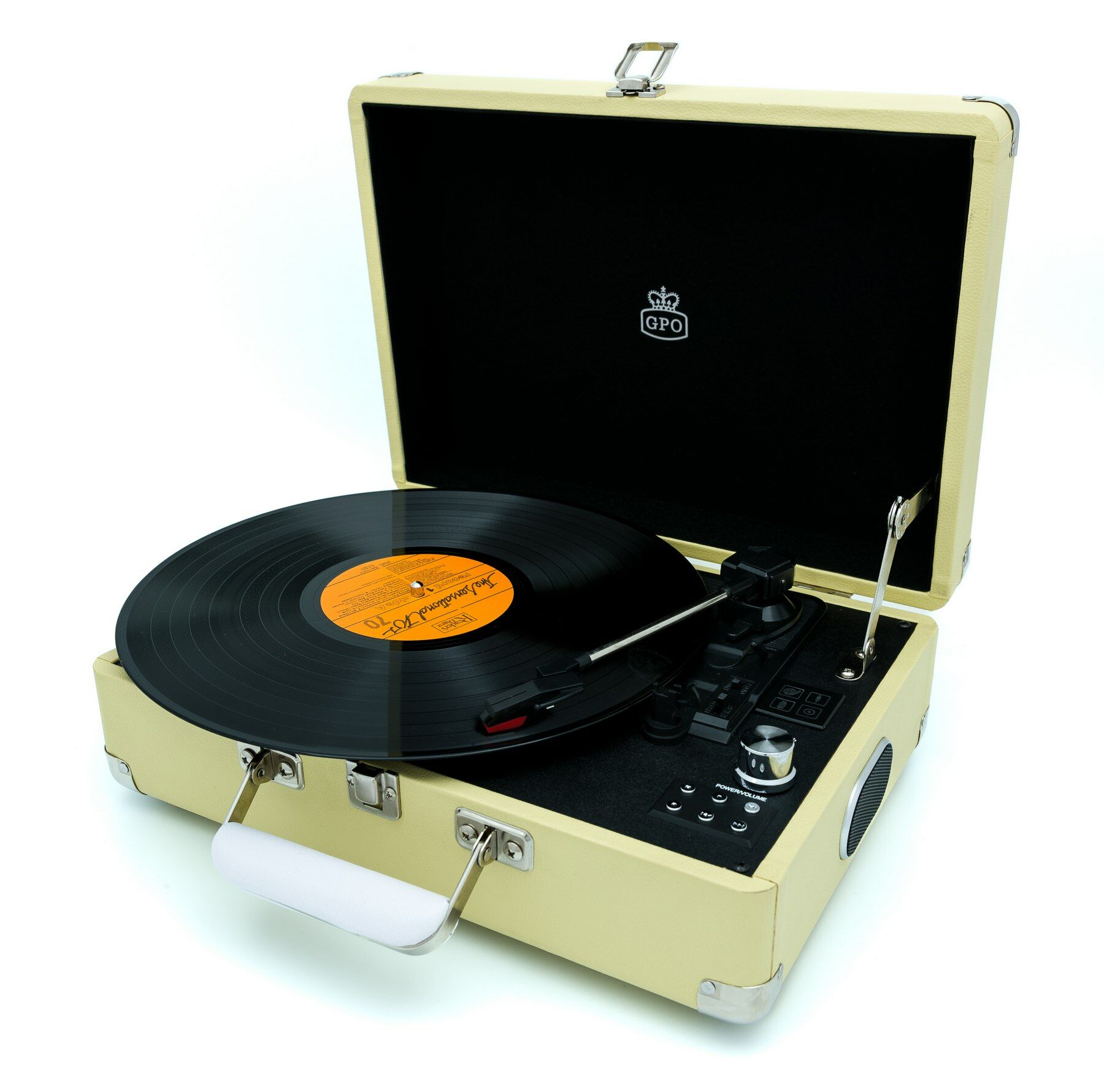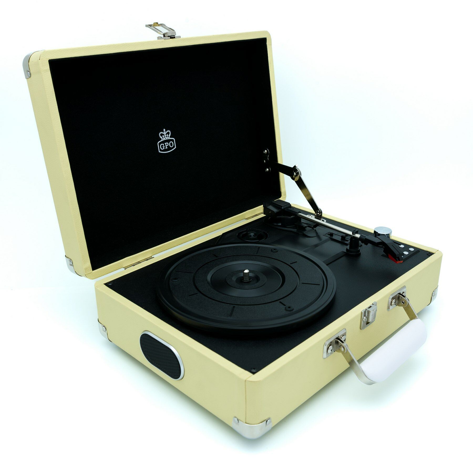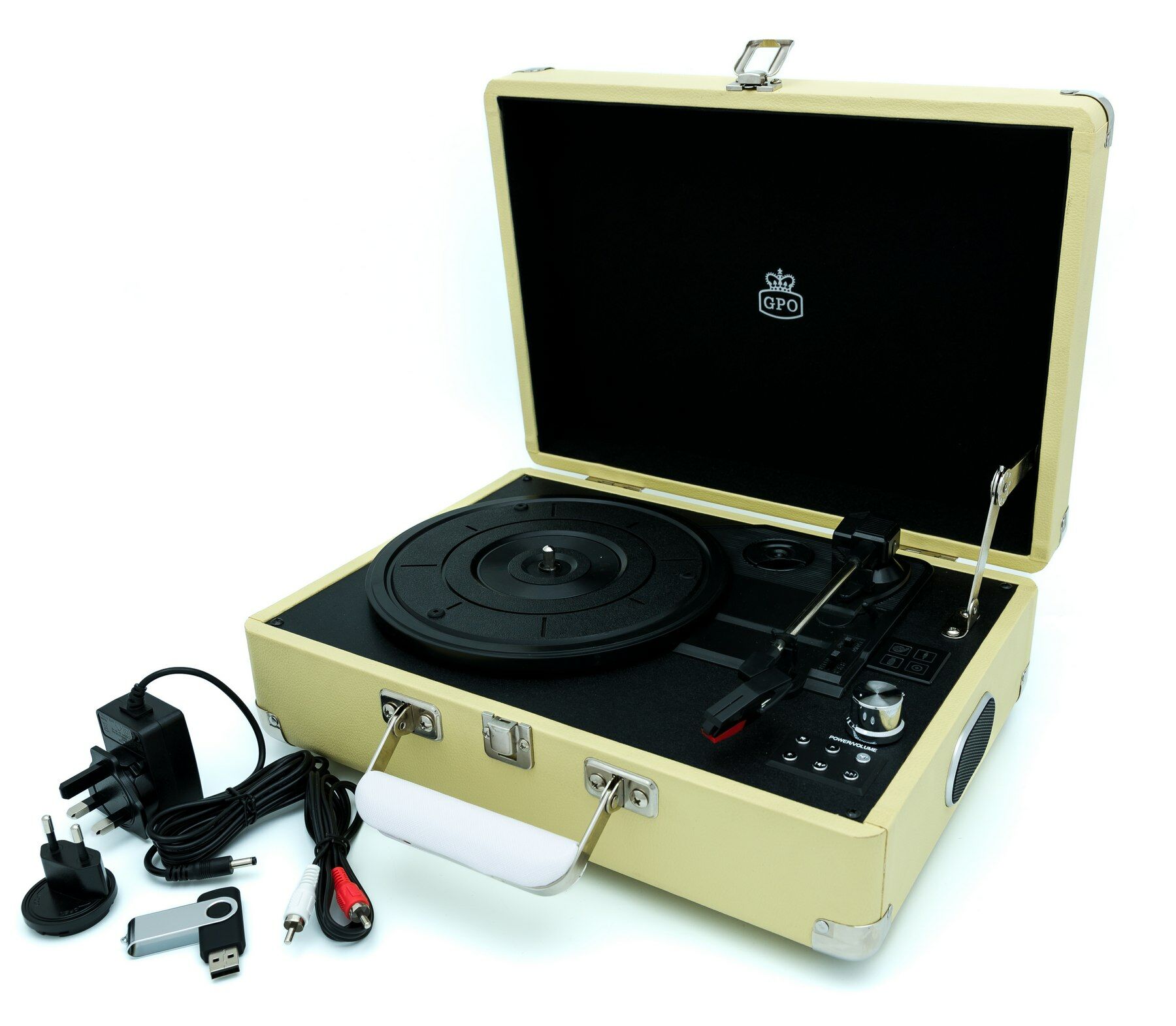 Met deze stijlvolle lichtgewicht kofferplatenspeler draait u eenvoudig uw LP’s en singles waar u maar wilt. De platenspeler is gemaakt van hout en bekleed met leer en heeft twee ingebouwde stereo speakers. Hierdoor is het niet noodzakelijk om extra speakers aan te sluiten. Voor een voller geluid kan deze platenspeler wel uitgebreid worden met bijvoorbeeld de WESTWOOD speakers van GPO. Bij deze kofferplatenspeler wordt een USB-stick meegeleverd, zodat u direct uw platen kunt opnemen. De ATTACHELEM is verkrijgbaar in diverse (vintage) kleuren en kan tevens uitgebreid worden met een bewaarkoffer (CASE12) voor uw LP's. Specificaties • Platenspeler met drie snelheden (33/45/78 RPM) • Kofferplatenspeler met encoding-functie (opname) • Twee ingebouwde stereo speakers • Single / LP adapter en USB stick meegeleverd • USB-aansluiting • Line-OUT (RCA) aansluiting • Afmeting product: 35,5 x 27,5 x 13,5 cm (BxDxH) • Gewicht incl. verpakking: 3.6 kilogram • EAN-code: 5060237572720