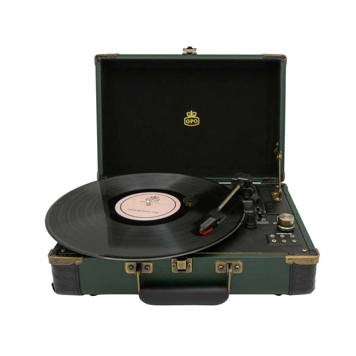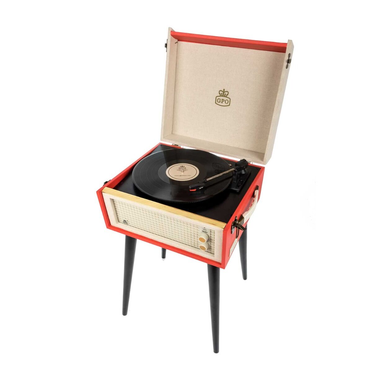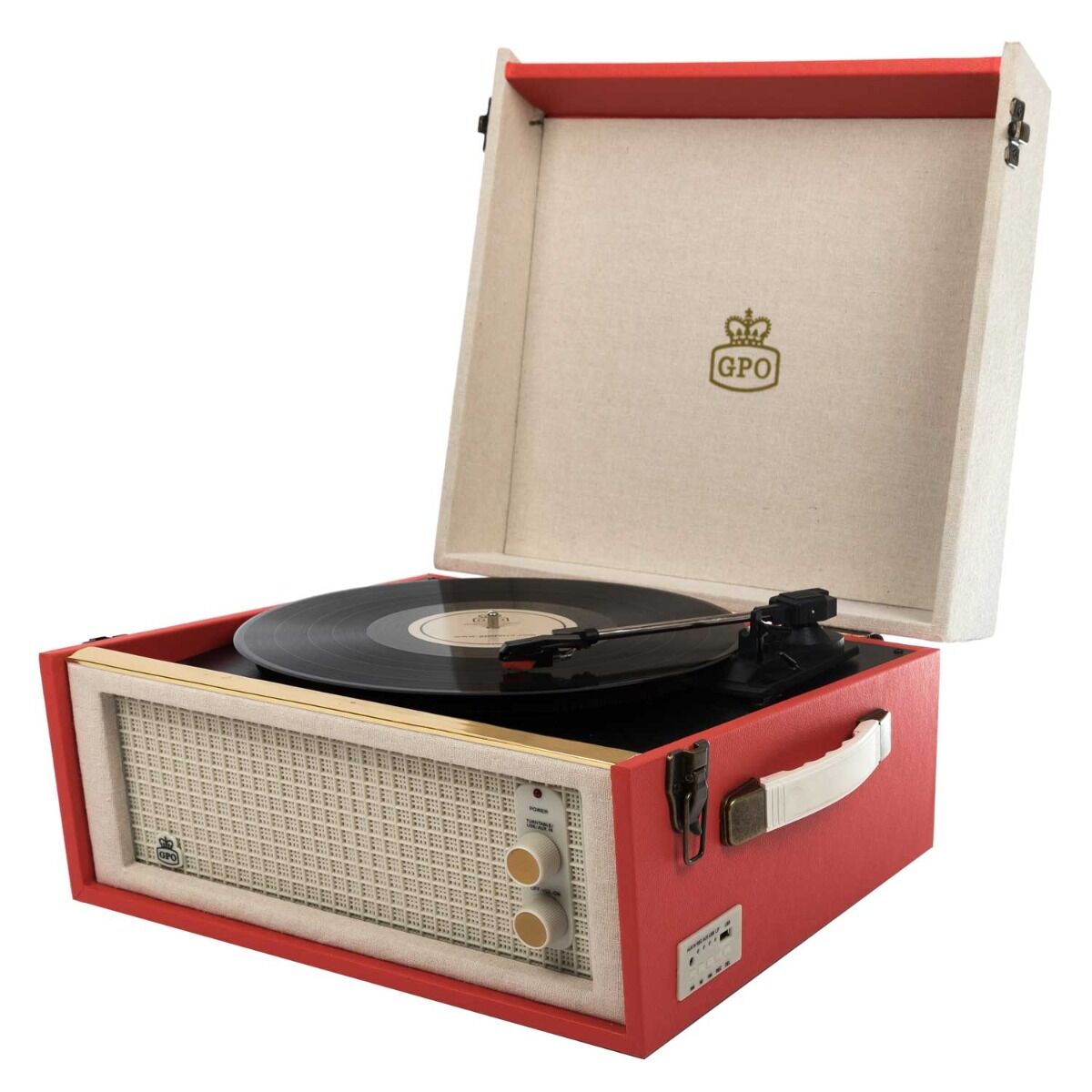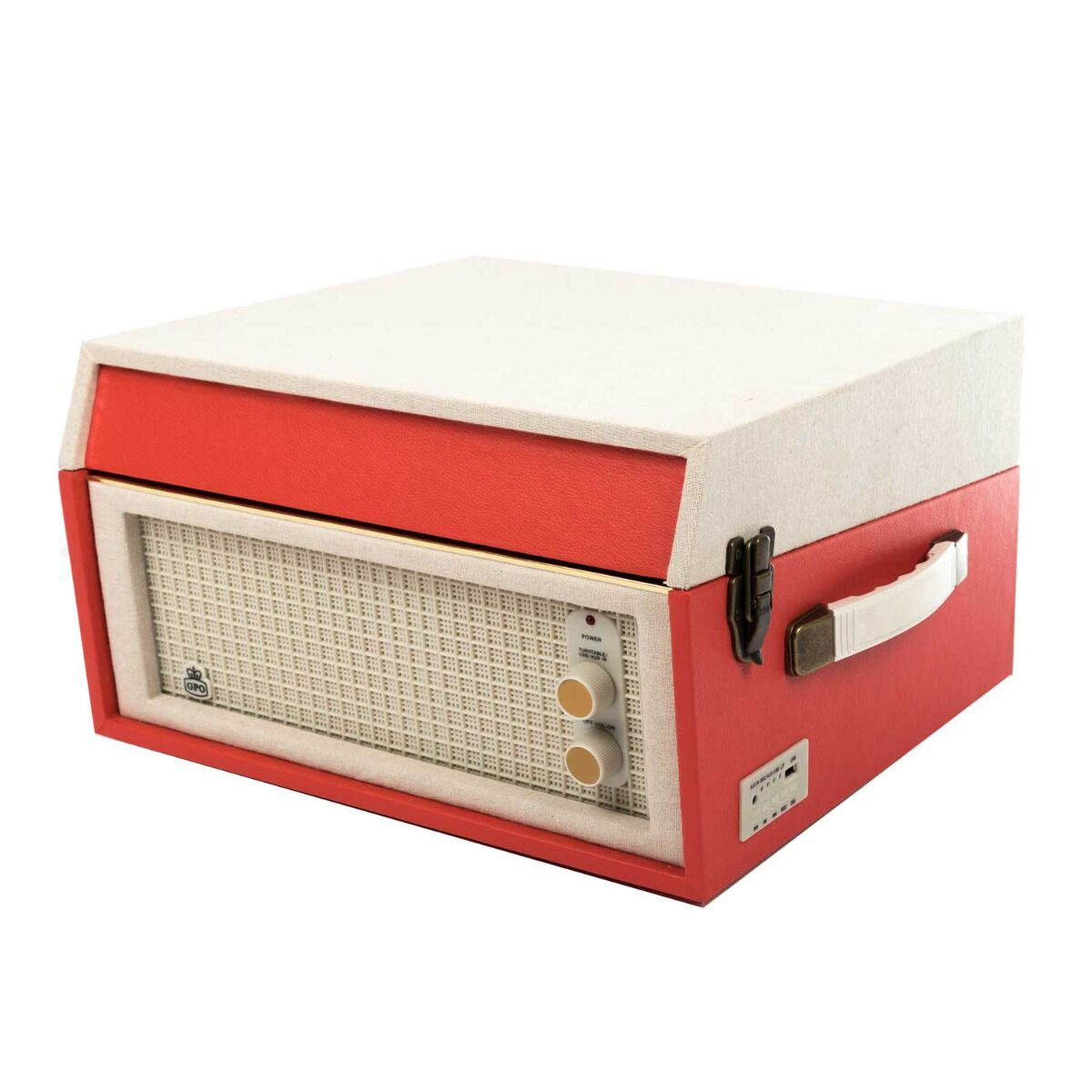 De BERMUDARED van GPO is een platenspeler in een klassiek jasje voor de moderne muziekliefhebber. Deze nostalgische platenspeler kan op pootjes geplaatst worden, zo maakt u er een vrijstaande muziekspeler van! Door de aanwezigheid van een ingebouwde stereo speaker is het niet noodzakelijk om extra speakers aan te sluiten. Voor een voller geluid kan de platenspeler wel uitgebreid worden met bijvoorbeeld de WESTWOOD speakers van GPO. Tevens kunt u met een USB-stick eenvoudig uw platen opnemen. Door de aan de zijkant bevestigde handgrepen is de BERMUDA gemakkelijk te verplaatsen. Specificaties: • Kofferplatenspeler (op poten) met encoding-functie (opname) • Ingebouwde dynamische stereo speakers: 2x 2,5 Watt (RMS) • Platenspeler met drie snelheden (33/45/78 RPM) en volautomatische toonarmlift • Afspeelmogelijkheid voor MP3-bestanden • Single/LP-adapter meegeleverd • USB-aansluiting • AUX-In-aansluiting • Hoofdtelefoonaansluiting • Line-Out-aansluiting (RCA) • Afmeting zonder poten: 38,2 x 36,8 x 21,5cm (BxDxH) • Afmeting met poten: 38,2 x 36,8 x 65,3cm (BxDxH) • Gewicht incl. verpakking: 8,2 kilogram • EAN-code: 5060237571167