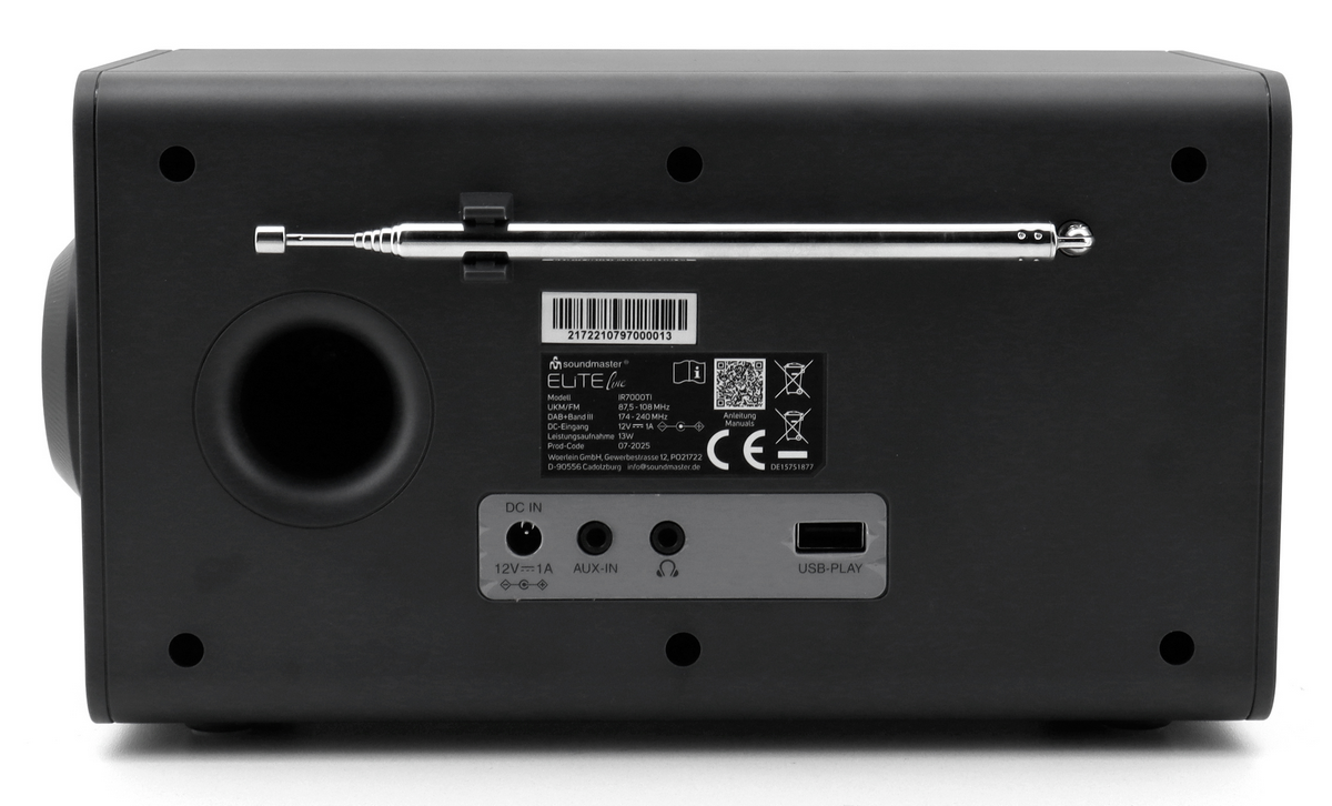 De Soundmaster IR7000TI radio uit de Soundmaster Elite Line is fraai ontworpen radio. Luister via dit apparaat naar DAB+, FM- of internetradio. Toch liever naar je eigen muziek luisteren? Stream dan je favoriete muziek via bluetooth of via het WiFi-netwerk. Een groot en helder LCD-scherm zorgt voor een mooi beeld en duidelijke tekstweergave. Dankzij de AUX-aansluiting is het mogelijk om eenvoudig externe audioapparatuur aan te sluiten. Bovendien is de IR7000TI uitgerust met een aansluiting voor de hoofdtelefoon. En om het u makkelijk te maken bediening via de afstandsbediening of via uw maobiel of tablet door middel van gebruik te maken van de OKTIV app. Deze radio is zeer fraai vormgegeven en een sieraad op elke plek waar u naar de radio wilt luisteren Specificaties • Internetradio met WLAN 2.4 / 5Ghz • DAB+/FM-radio met RDS • 30 voorkeurzenders, 4 voorkeuze toetsen en 26 in te stellen voorkeuzezenders • 3,2” LCD-kleurendisplay • USB-aansluiting • Hoorboekfunctie • Bluetooth connectiviteit • Equalizer met voorgeprogrammeerde klankinstellingen • Dubbel alarm met weekendfunctie en sleep timer • AUX-In-, USB- en hoofdtelefoonaansluiting • Bediening via OKTIV APP met mobiele telefoon of tablet • Afstandsbediening meegeleverd • Uitgangsvermogen: 8,0 Watt (RMS) • Netvoeding: AC 230 V / 50 Hz • Afmeting product: 25,0 x 14,2 x 13,5 cm (BxHxD) • Gewicht incl. verpakking: ?? kg • EAN-code: 4005425012870