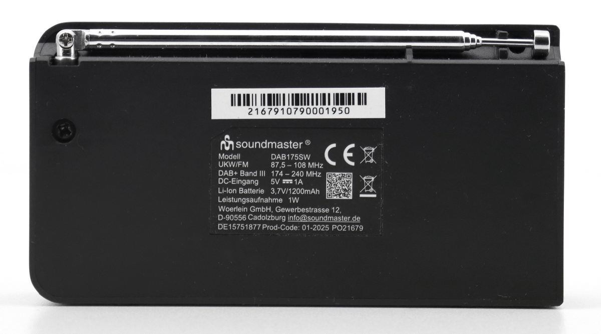 Met deze Soundmaster DAB175SW portable radio is het mogelijk om zowel naar DAB+ als FM-radiostations te luisteren. Hierdoor heeft u toegang tot een groot aantal radiozenders. U heeft de beschikking over maar liefst 40 voorkeuzezenders. Ook is deze compacte radio voorzien van bluetooth connectiviteit, waardoor u ook uw favoriete muziek vanaf een ander apparaat kunt afspelen. De DAB175SW heeft een ingebouwde accu, waardoor deze radio makkelijk mee te nemen is en u op elke willekeurige plek radio kunt luisteren. De functieknoppen zijn eenvoudig te bedienen. Bovendien kunt u via het kleurendisplay goed in de gaten houden naar welke zender en programma u aan het luisteren bent. Dankzij de hoofdtelefoonaansluiting is het mogelijk om muziek te luisteren zonder dat u hiermee iemand anders tot last bent. Kortom de Soundmaster DAB175SW is een erg handig en functioneel 'radiootje' voor een zacht prijsje. Specificaties: • DAB+, FM-radio met RDS • Dimbaar kleurendisplay (2,4 inch) • 40 voorkeuzezenders (20 DAB+ en 20 FM) • Wekker met dubbel alarm, sleep- en snoozefunctie (functie dubbel alarm werkt alleen bij aansluiten op stroomnetwerk) • Telescoopantenne • Hoofdtelefoonaansluiting • Micro-USB-aansluiting • Ingebouwde oplaadbare Li-lon batterij (3,7 V - 1.200 mAh) • Inclusief USB-C-oplaadkabel • Afmeting product: 12,3 x 2,5 x 6,5 cm (BxDxH) • Gewicht incl. verpakking: 0,19 kg • EAN-code: 4005425012726