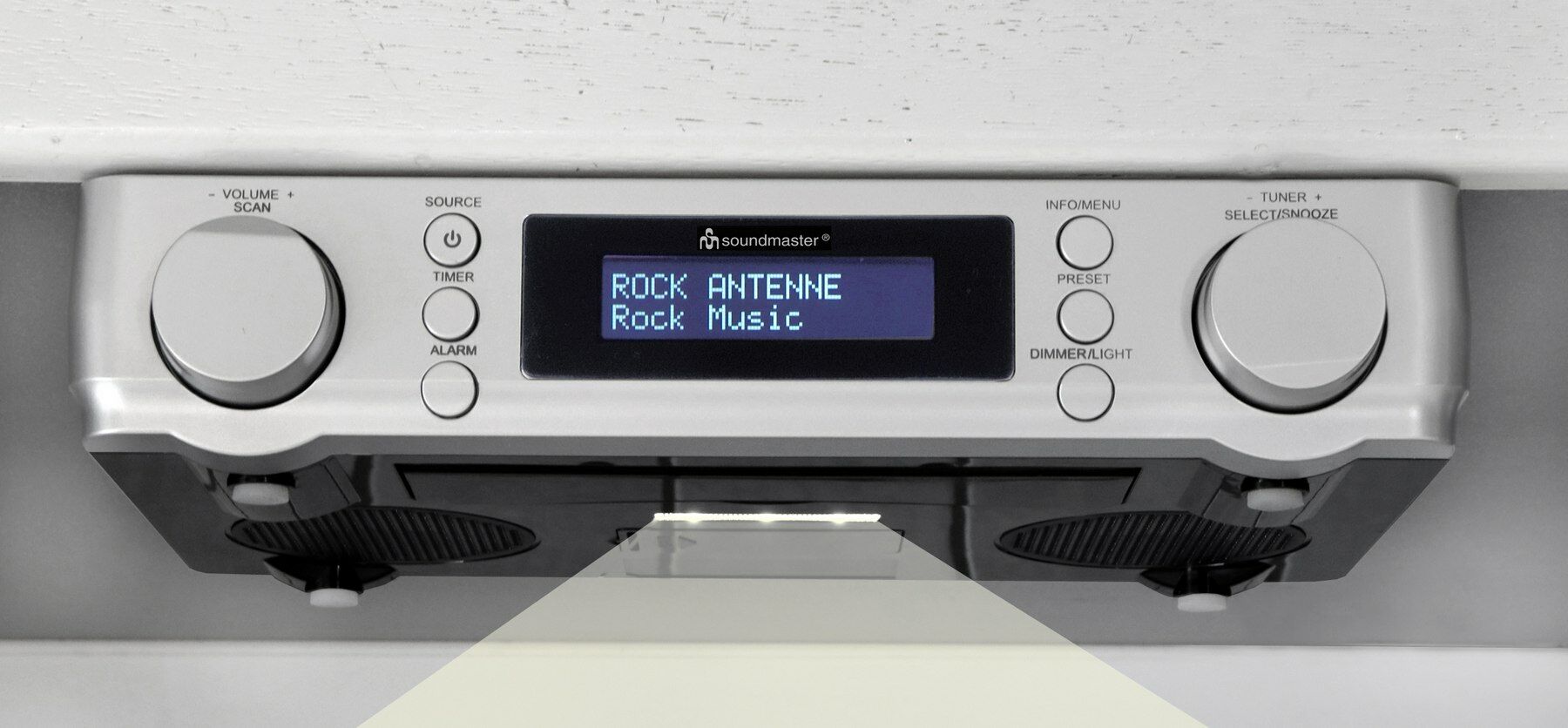 Met de Soundmaster UR2022SI onderbouwradio verveelt u zich nooit meer tijdens het koken of klussen. Ideaal voor plaatsing onder een bovenkast in bijvoorbeeld keuken, boot of werkplaats, zodat u altijd uw werkblad vrij heeft en toch uw favoriete radiostations binnen handbereik. Dankzij het afneembare bodempaneel is de UR2022SI ook op uw aanrecht of werkblad te plaatsen. De DAB+ radio heeft RDS-ondersteuning en beschikt over voorkeuzezenders. Het functiemenu is eenvoudig te bedienen.