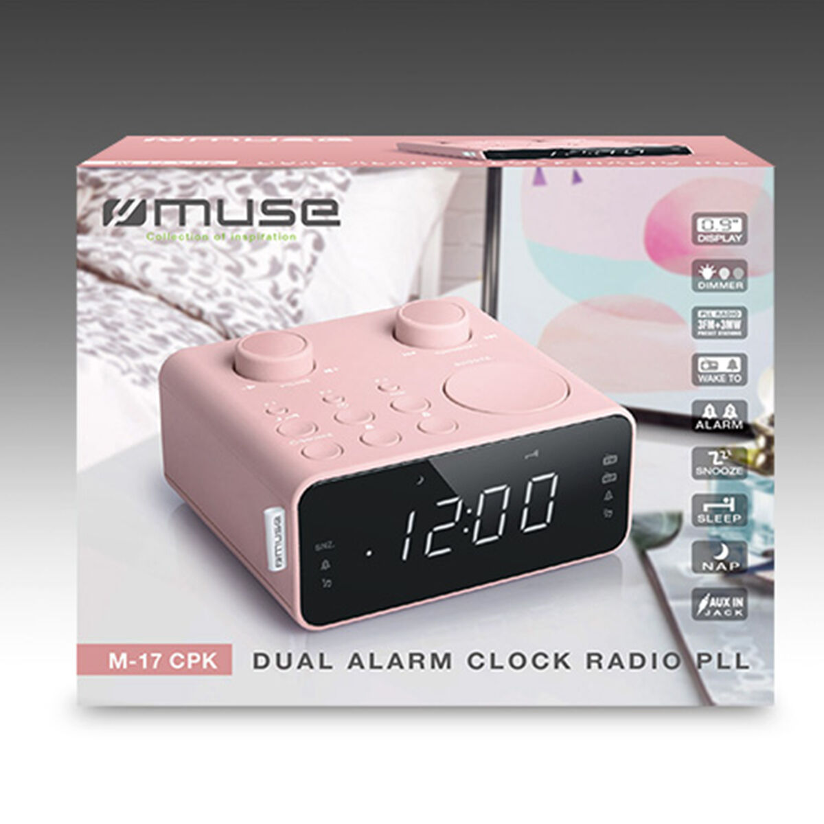 Met deze Muse M-17CPK wekkerradio kunt u zich niet meer verslapen. Laat u wekken via het radiosignaal of door de buzzer. De wekkerradio beschikt over voorkeurzenders, zodat u met een druk op de knop altijd op uw favoriete radiozender afstemt. Ook het dubbele alarm ontbreekt niet en met de AUX-aansluiting kunt u een extern apparaat eenvoudig op deze wekkerradio aansluiten. Deze Muse M-17CPK wekker werkt op netstroom en is tevens uitgerust met een back-up-faciliteit (batterij). Mocht de stroom onverhoopt uitvallen dan blijven de instellingen bewaard.