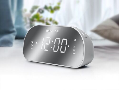 Wakker worden in stijl! Met deze elegante Muse M-170CMR wekkerradio met spiegeldisplay is het prettig wakker worden. U kunt ervoor kiezen om u te laten wekken door de radio of door de buzzer. De wekker biedt de mogelijkheid om twee verschillende wektijden te programmeren, één voor u en één voor uw partner. Het front van deze wekker is een spiegel met daarin een groot en goed leesbaar LED-display, die ook nog te dimmen is. De Muse M-170CMR werkt op netstroom. Bovendien is deze wekker uitgerust met een back-up-functie (batterij). Mocht de stroom onverhoopt uitvallen dan blijven de instellingen bewaard. Met deze wekker is wakker worden niet zo moeilijk meer!