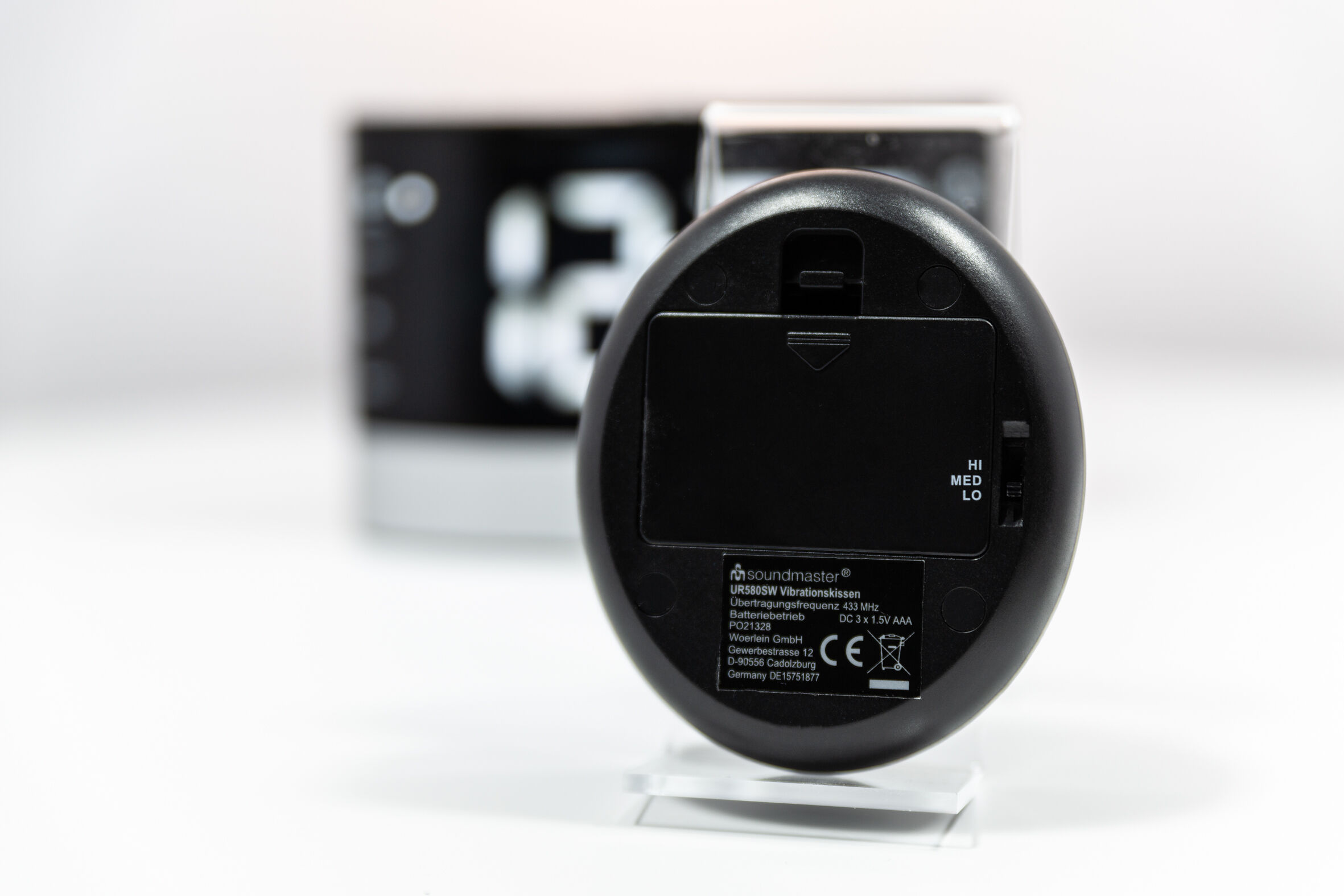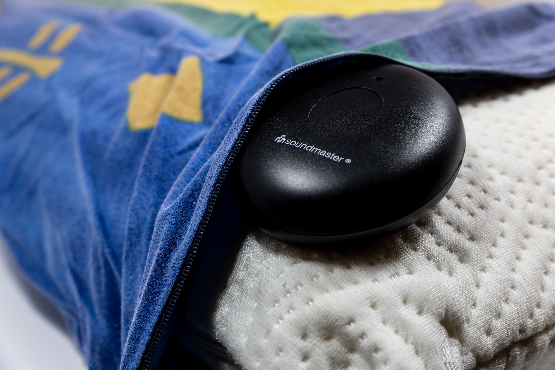 • Draadloze trilschijf met drie trilniveaus voor plaatsing onder het kussen