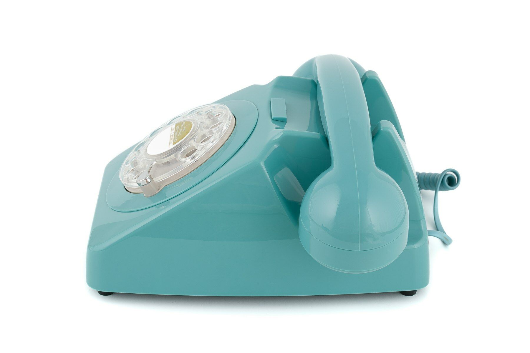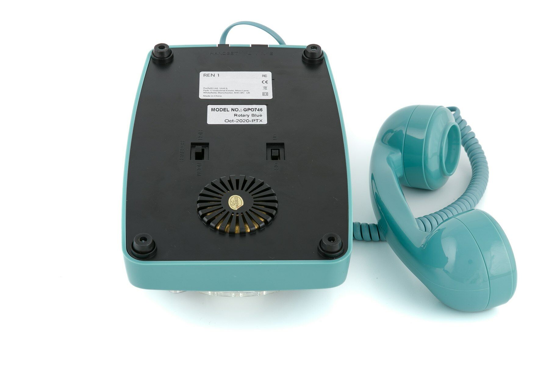 De 746ROTARYBLU retro telefoon van GPO is één van de meest populaire telefoons ooit ontworpen en geliefd door zijn eenvoud. Geen toeters, maar wel gewoon bellen! In de jaren ‘70 en ‘80 was dit de telefoon die bij nagenoeg iedereen in de woonkamer stond. De 746ROTARY is verkrijgbaar in verschillende kleuren, dus uw favoriete kleur zit er altijd bij! Specificaties: • Traditionele ringtoon • Originele draaischijf • Werkt op elke standaard telefoonlijn • Gebruik via een ISDN/ADSL-verbinding en/of gebruik van een splitter kan in een enkel geval invloed hebben op de kwaliteit van de verbinding • Deze telefoon is niet geschikt voor een VOIP-verbinding (hiervoor zijn speciale GPO-modellen beschikbaar) • De 746ROTARY is tevens leverbaar in de kleuren Azuurblauw, Zwart, Mintgroen, Grijs, Crème, Mosterdgeel, Oranje, Roze, Rood • Afmeting product: 21,5 x 16,0 x 14,5 cm (BxDxH) • Gewicht incl. verpakking: 1,3 kilogram • EAN-code: 5060237570641