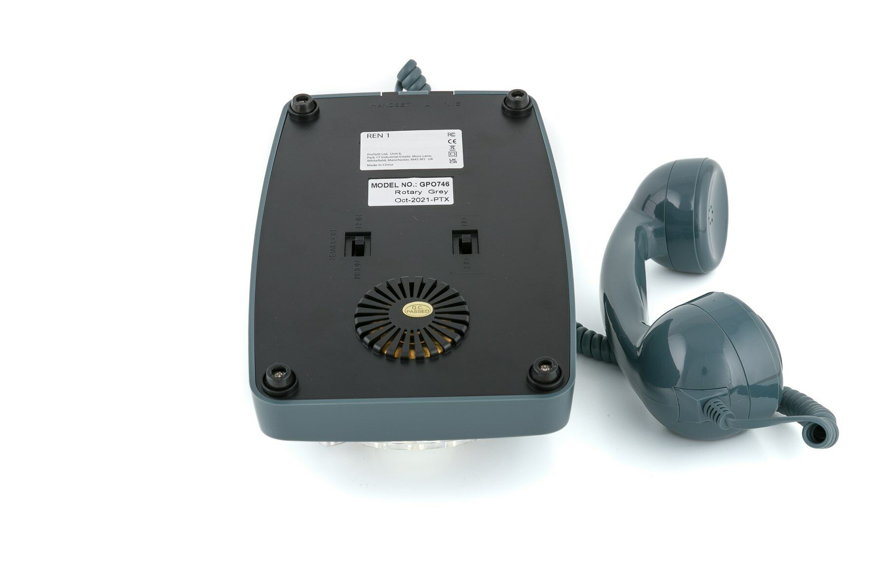 De 746ROTARYGREY retro telefoon van GPO is één van de meest populaire telefoons ooit ontworpen en geliefd door zijn eenvoud. Geen toeters, maar wel gewoon bellen! In de jaren ‘70 en ‘80 was dit de telefoon die bij nagenoeg iedereen in de woonkamer stond. De 746ROTARY is verkrijgbaar in verschillende kleuren, dus uw favoriete kleur zit er altijd bij! Specificaties: • Traditionele ringtoon • Originele draaischijf • Werkt op elke standaard telefoonlijn • Gebruik via een ISDN/ADSL-verbinding en/of gebruik van een splitter kan in een enkel geval invloed hebben op de kwaliteit van de verbinding • Deze telefoon is niet geschikt voor een VOIP-verbinding (hiervoor zijn speciale GPO-modellen beschikbaar) • De 746ROTARY is tevens leverbaar in de kleuren Azuurblauw, Zwart, Blauw, Mintgroen, Crème, Mosterdgeel, Oranje, Roze, Rood• Afmeting product: 21,5 x 16,0 x 14,5 cm (BxDxH) • Gewicht incl. verpakking: 1,3 kilogram • EAN-code: 5060237570658