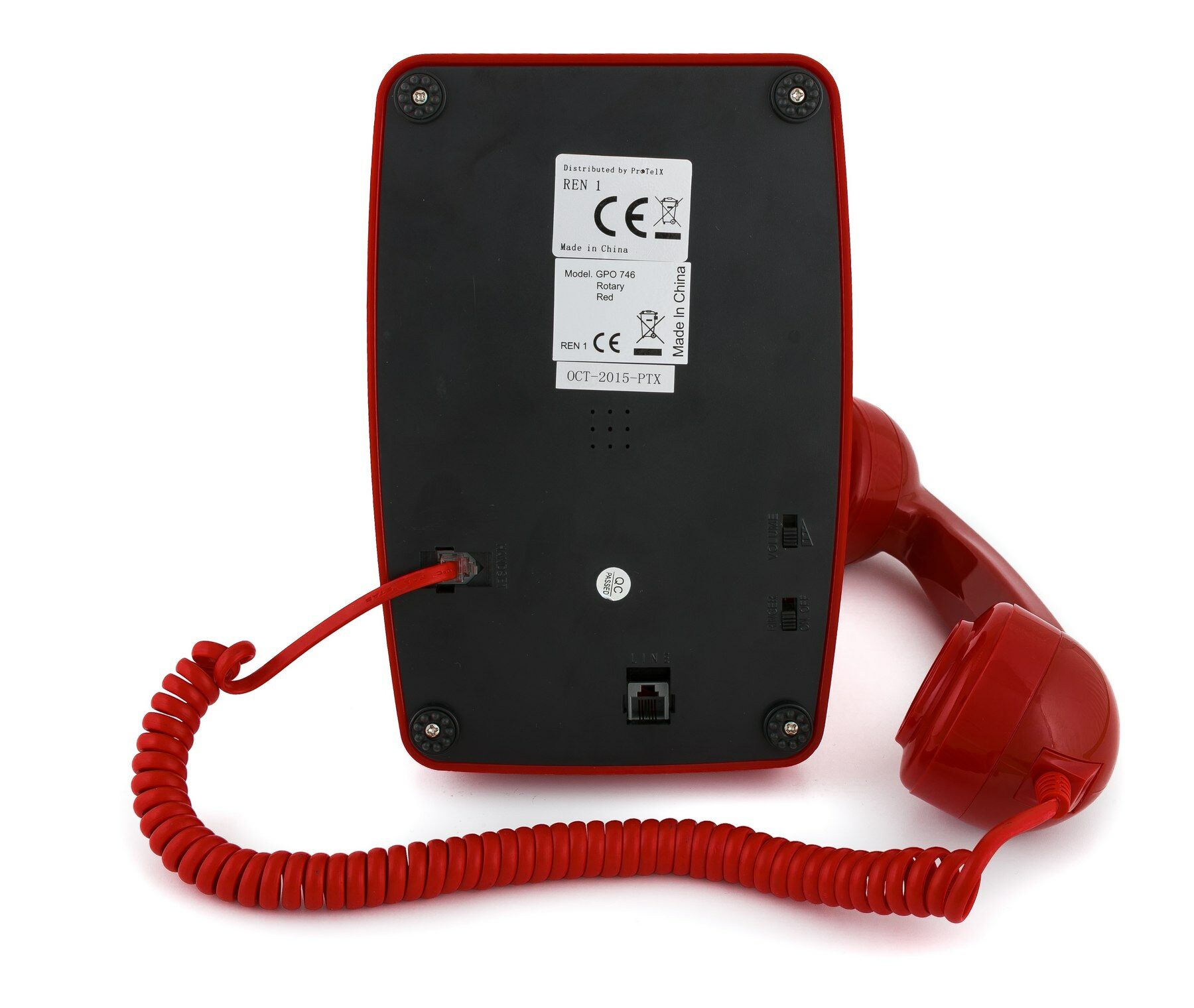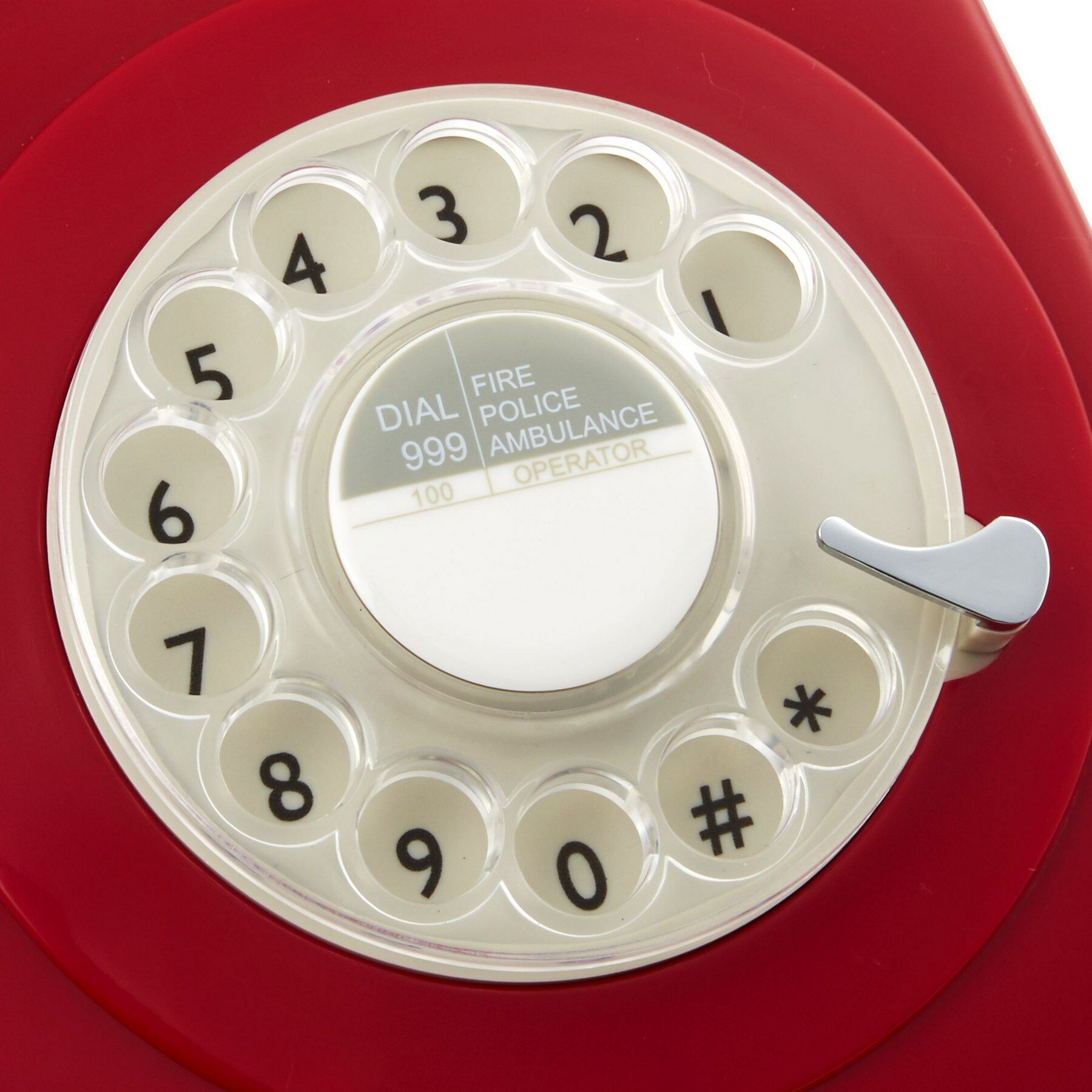 De 746ROTARYRED retro telefoon van GPO is één van de meest populaire telefoons ooit ontworpen en geliefd door zijn eenvoud. Geen toeters, maar wel gewoon bellen! In de jaren ‘70 en ‘80 was dit de telefoon die bij nagenoeg iedereen in de woonkamer stond. De 746ROTARY is verkrijgbaar in verschillende kleuren, dus uw favoriete kleur zit er altijd bij! Specificaties: • Traditionele ringtoon • Originele draaischijf • Werkt op elke standaard telefoonlijn • Gebruik via een ISDN/ADSL-verbinding en/of gebruik van een splitter kan in een enkel geval invloed hebben op de kwaliteit van de verbinding • Deze telefoon is niet geschikt voor een VOIP-verbinding (hiervoor zijn speciale GPO-modellen beschikbaar) • De 746ROTARY is tevens leverbaar in de kleuren Azuurblauw, Zwart, Blauw, Mintgroen, Grijs, Crème, Mosterdgeel, Oranje, Roze • Afmeting product: 21,5 x 16,0 x 14,5 cm (BxDxH) • Gewicht incl. verpakking: 1,3 kilogram • EAN-code: 5060237570269