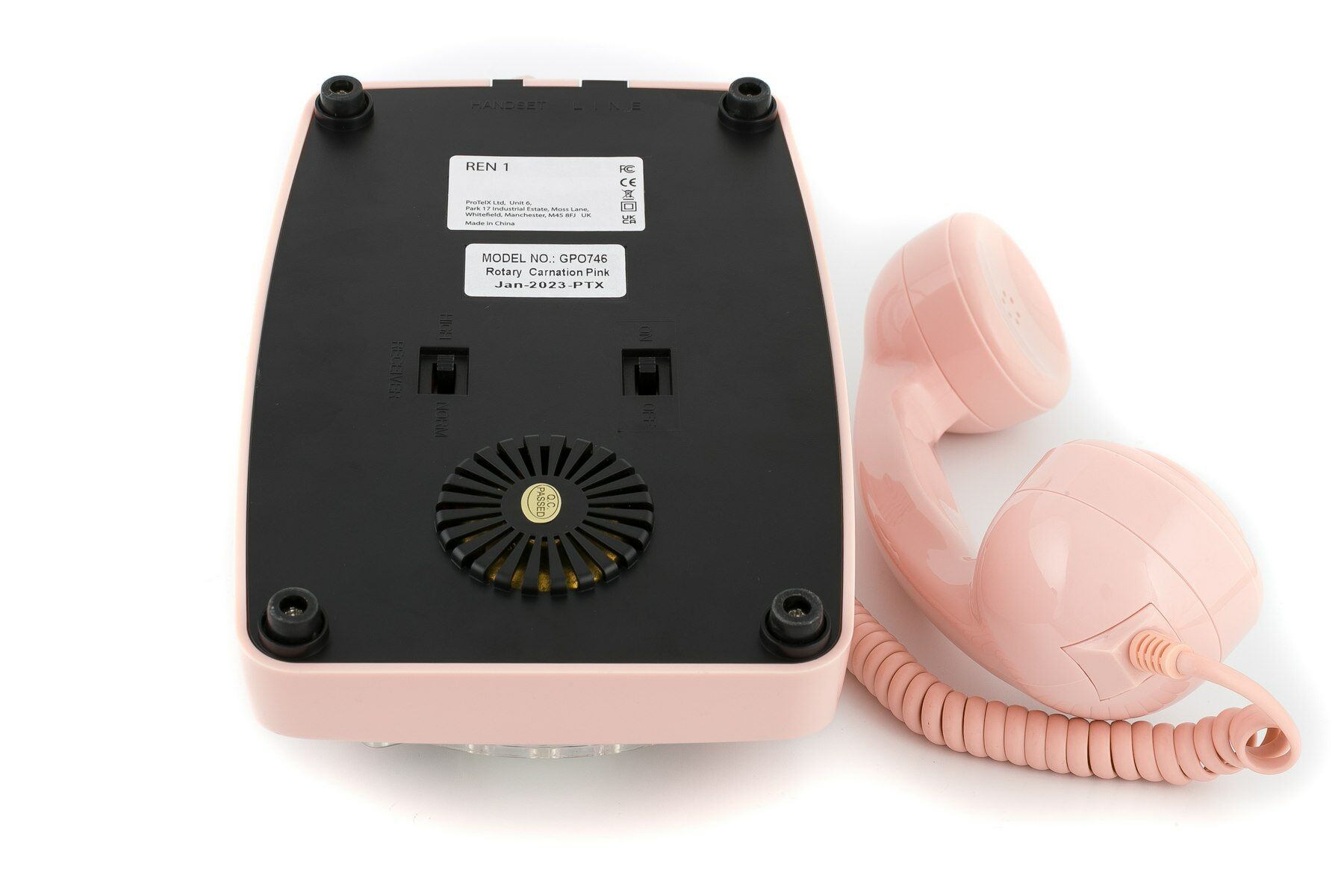 De 746ROTARYPINK retro telefoon van GPO is één van de meest populaire telefoons ooit ontworpen en geliefd door zijn eenvoud. Geen toeters, maar wel gewoon bellen! In de jaren ‘70 en ‘80 was dit de telefoon die bij nagenoeg iedereen in de woonkamer stond. De 746ROTARY is verkrijgbaar in verschillende kleuren, dus uw favoriete kleur zit er altijd bij! Specificaties: • Traditionele ringtoon • Originele draaischijf • Werkt op elke standaard telefoonlijn • Gebruik via een ISDN/ADSL-verbinding en/of gebruik van een splitter kan in een enkel geval invloed hebben op de kwaliteit van de verbinding • Deze telefoon is niet geschikt voor een VOIP-verbinding (hiervoor zijn speciale GPO-modellen beschikbaar) • De 746ROTARY is tevens leverbaar in de kleuren Azuurblauw, Zwart, Blauw, Mintgroen, Grijs, Crème, Mosterdgeel, Oranje, Rood• Afmeting product: 21,5 x 16,0 x 14,5 cm (BxDxH) • Gewicht incl. verpakking: 1,3 kilogram • EAN-code: 5060237572195