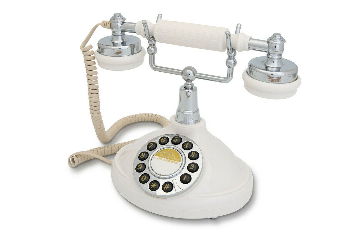 De 1920SPUSHOPAL retro telefoon van GPO is met zijn klassieke jaren '20 look een sieraad op elk nachtkastje of bureau. Door haar chique en stijlvolle ontwerp heeft deze telefoon een mooie vrouwelijke uitstraling. Van binnen is deze dame helemaal van deze tijd en werkt ze uitstekend op elke standaard telefoonlijn. Ideaal voor langdurige gesprekken en met de druktoetsen makkelijk en snel te bedienen. Specificaties: • Beltoon met aan-/uitschakelaar • Druktoetsbediening • Werkt op elke standaard telefoonlijn • Materiaal: kwalitatief sterk plastic • Afmeting product: 17,5 x 13,0 x 21,0 cm (BxDxH) • Gewicht incl. verpakking: 1,25 kilogram • EAN-code: 5060237570344