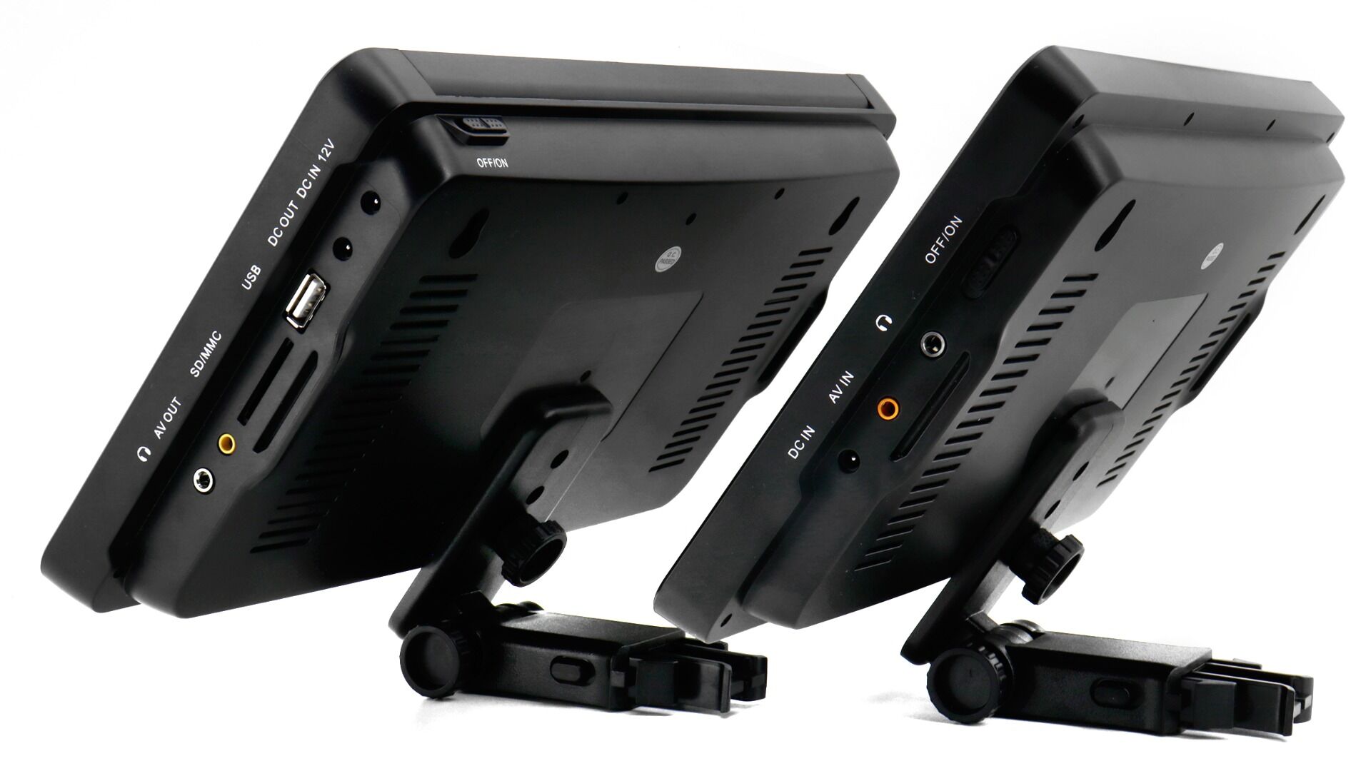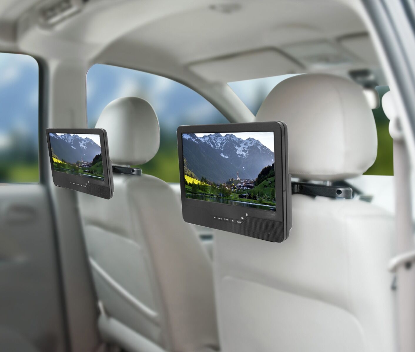 • Meegeleverd: afstandsbediening, 2 stabiele hoofdsteunhouders, 2 hoofdtelefoons, AC/DC-adapter (12 V / 1,5 A),